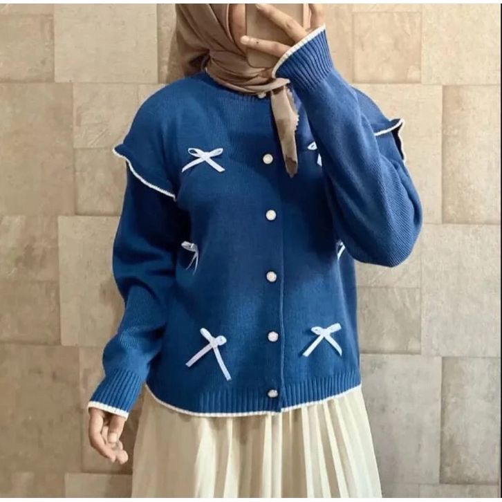 Cardigan Wanita Korea Kekinian POPPY cardigan rajut pita outer - korean look - cardigan pita lucu