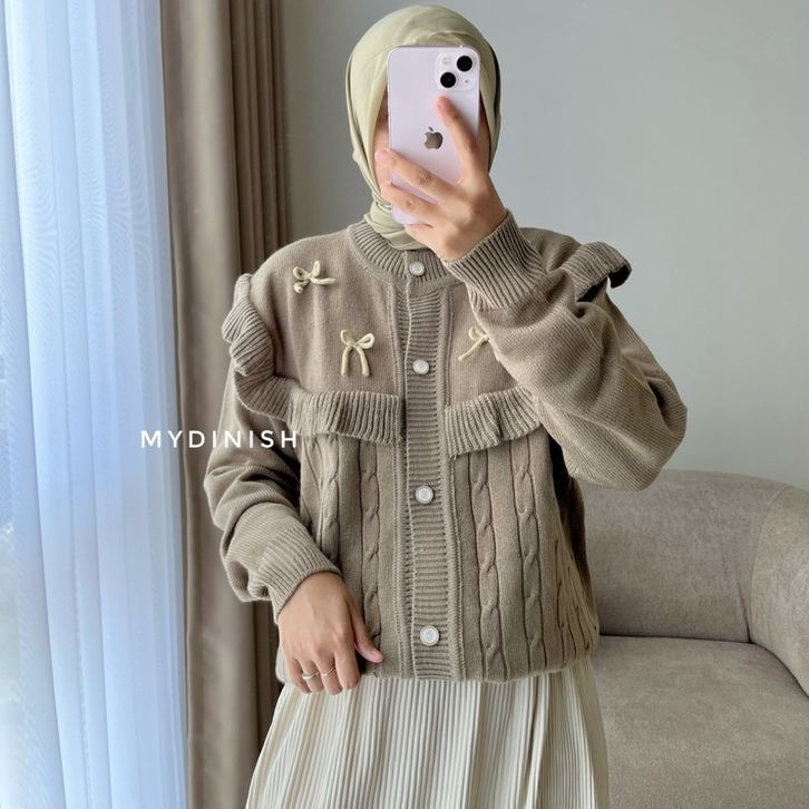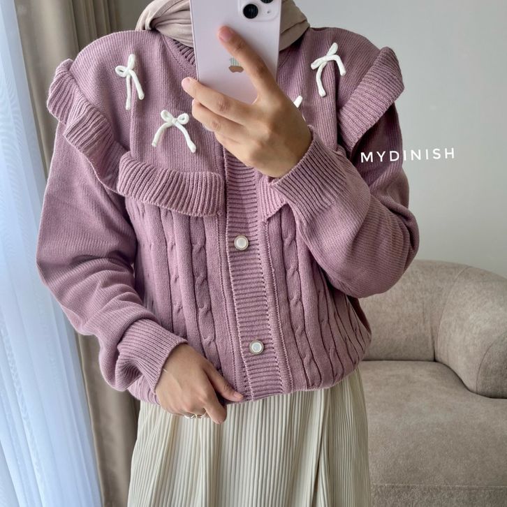 Cardigan Wanita Korea Kekinian Darika Ruffle Cardy - Atasan Lucu Cardigan Wanita Motif Pita