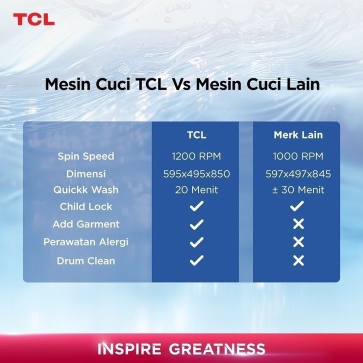 TCL MESIN CUCI TWINTUB 7/8/9KG - TWT86-20S/TWT96-20S Front Loading