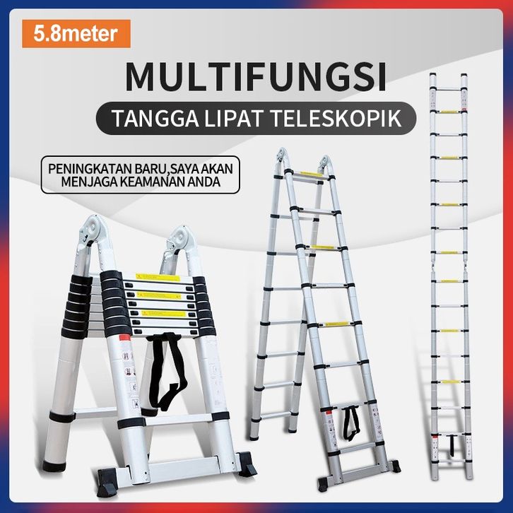 Tangga Lipat Aluminium Teleskopik – Tangga A Anti Slip 3.2M 3.8M 5M Kokoh Serbaguna Praktis