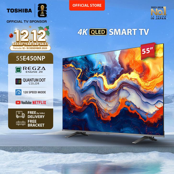 [KHUSUS ONLINE] Toshiba TV 55" 4K UHD Smart TV - QLED Dolby Vision Atmos VRR Netflix Disney+ Youtube Digital - 55E450NP
