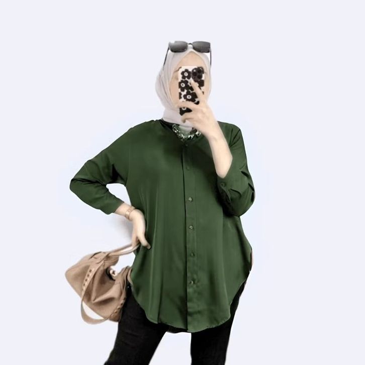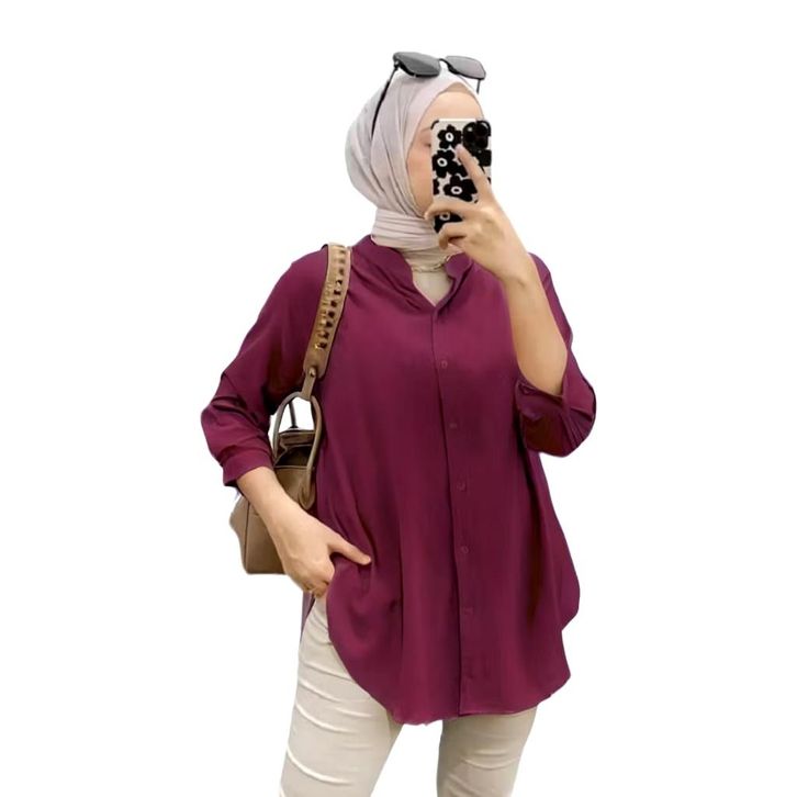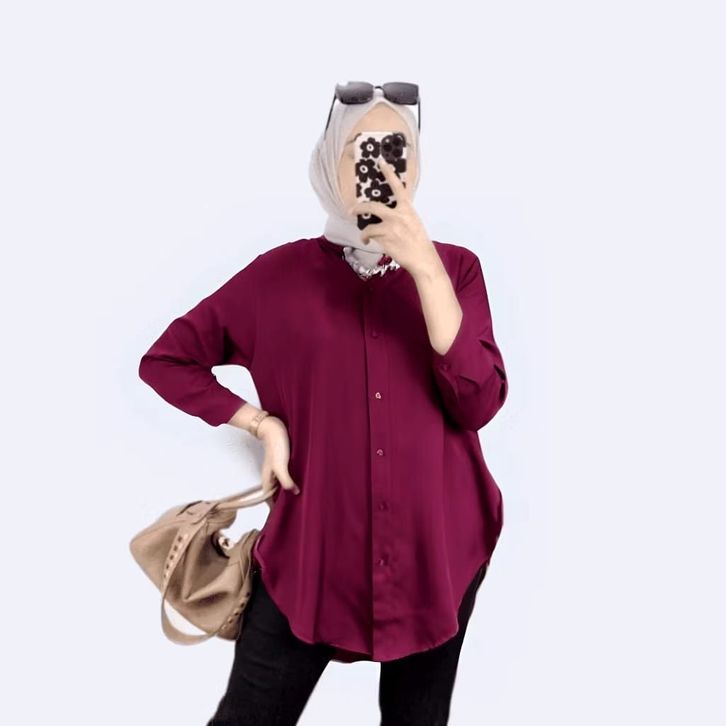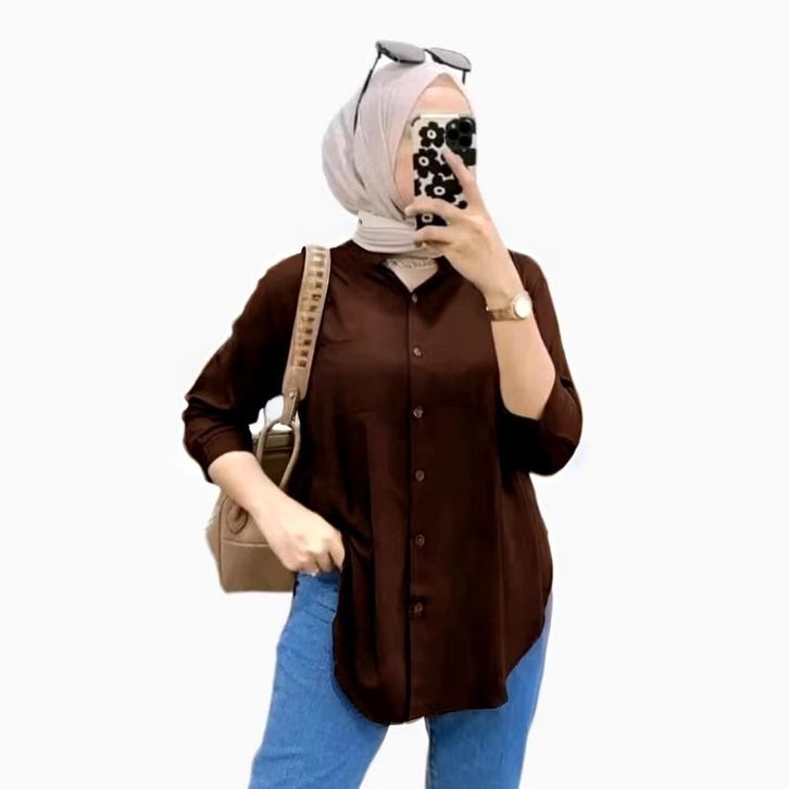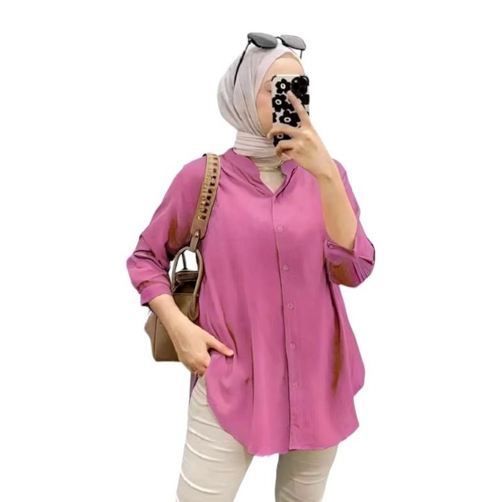 Kemeja Wanita Rayon Twill - kemeja Blouse Oversize Shirt Polos