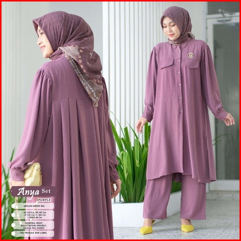 Anya One Set Tunik Premium One Set Crinkle Airflow