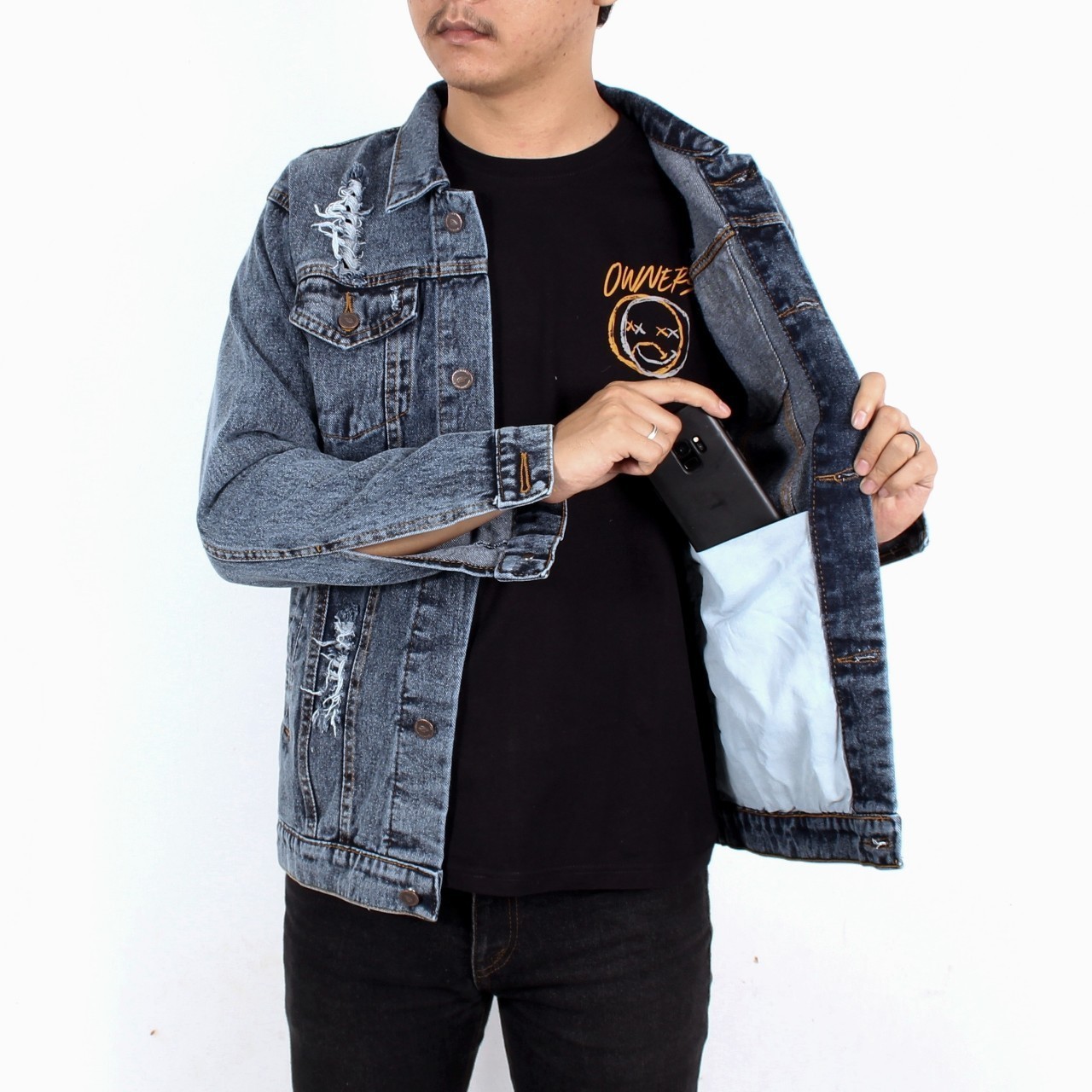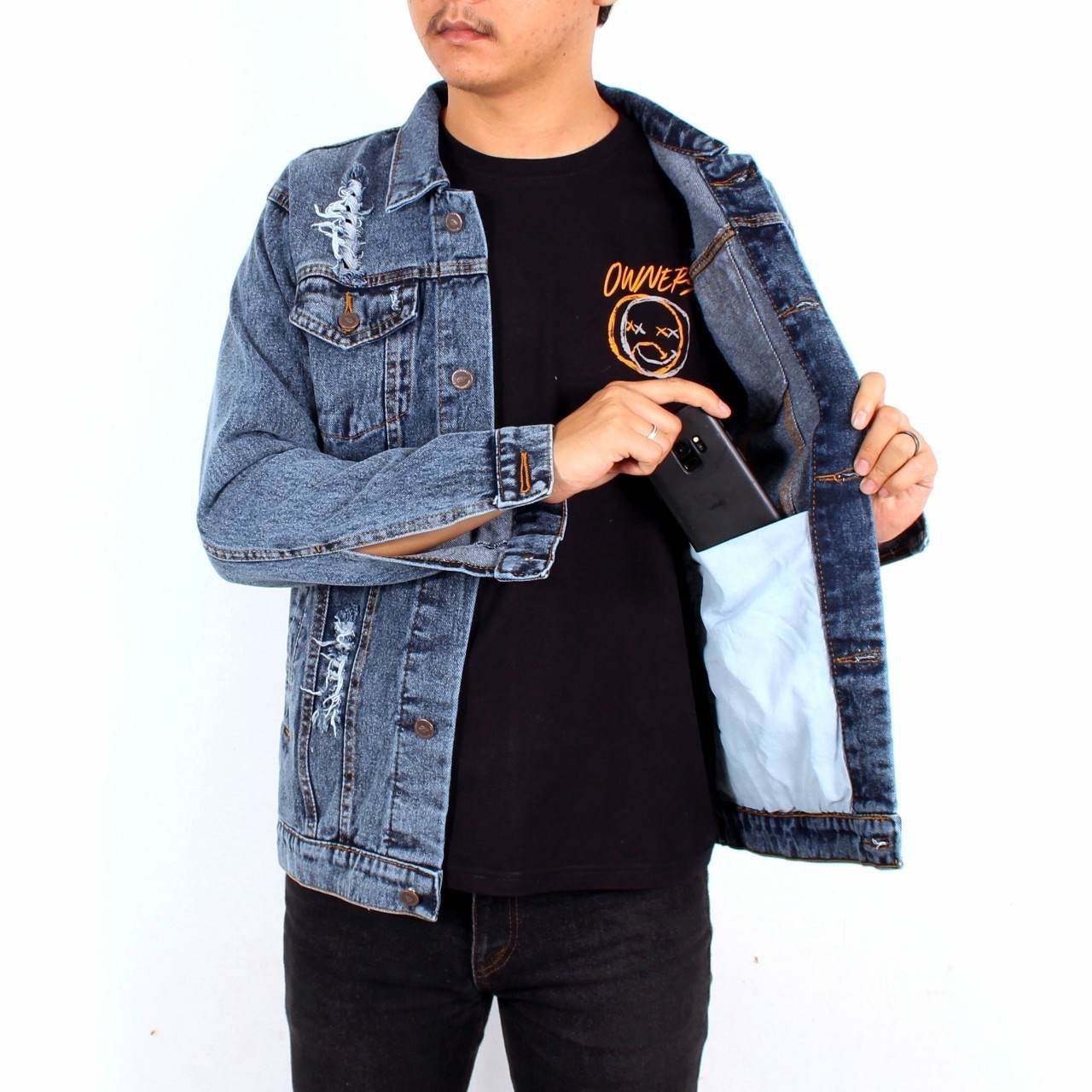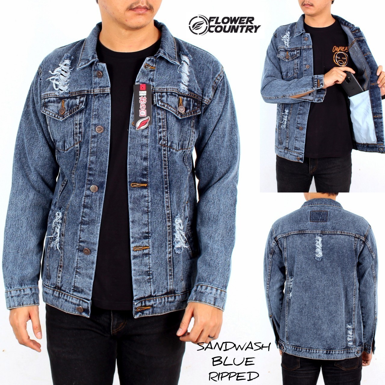 Jaket Jeans Pria Sandwash Jaket Levis Sandwash Sobek Robek Jaket Ripped Jeans Original Premium Adreena Store