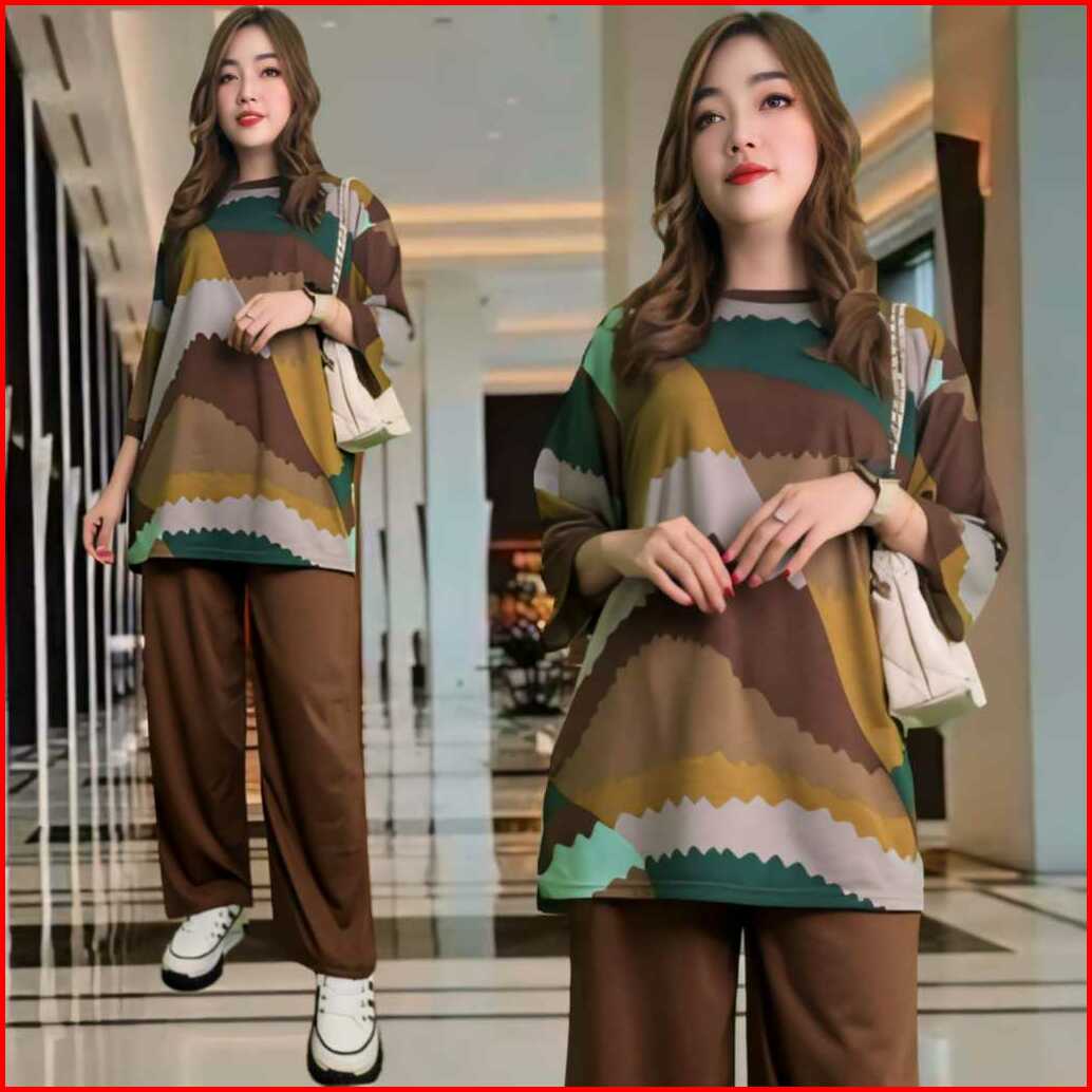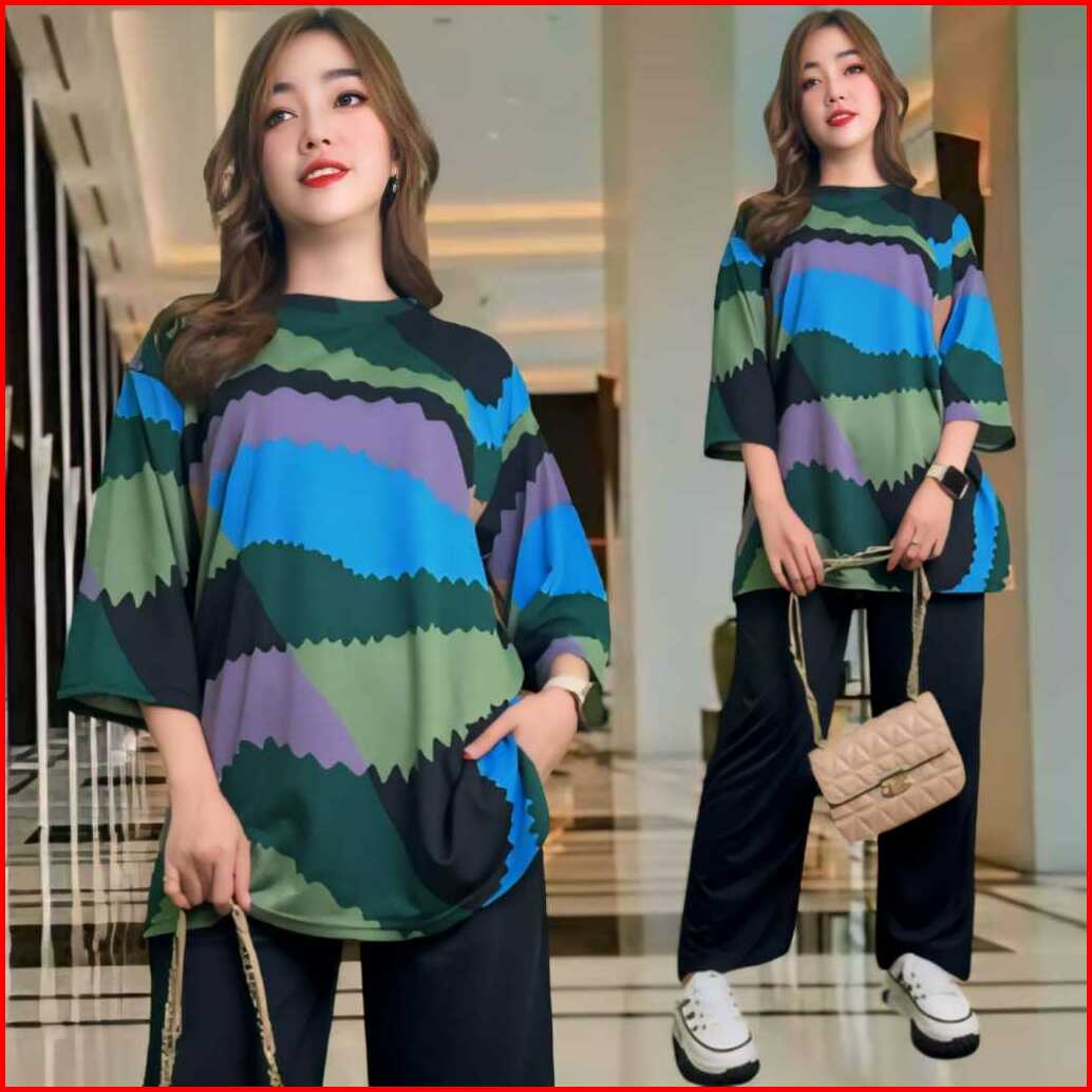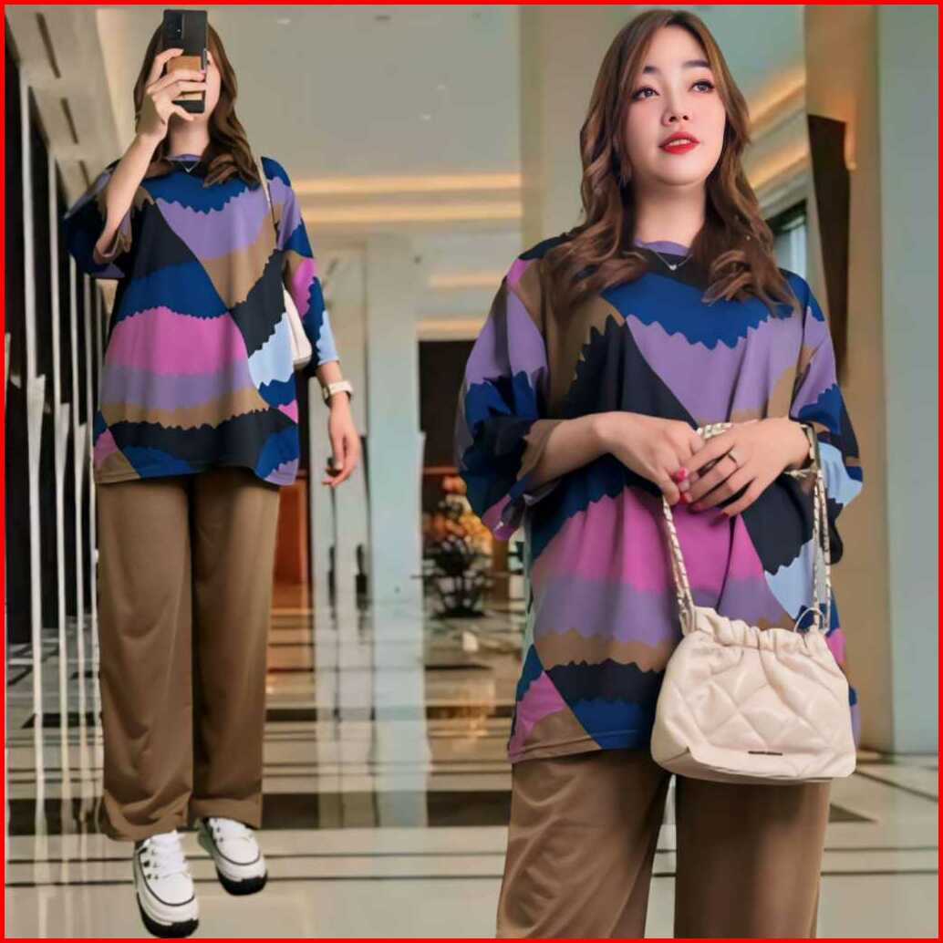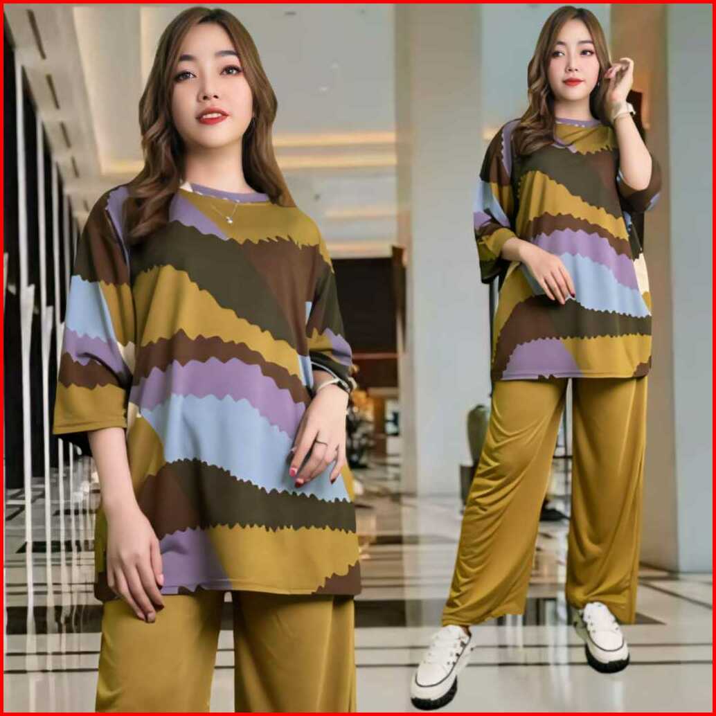 Saadia Ld 120 Setelan Wanita Celana Dan Atasan Oversize Wanita Baju Kantong Karet Kaos Dewasa Motif Panjang