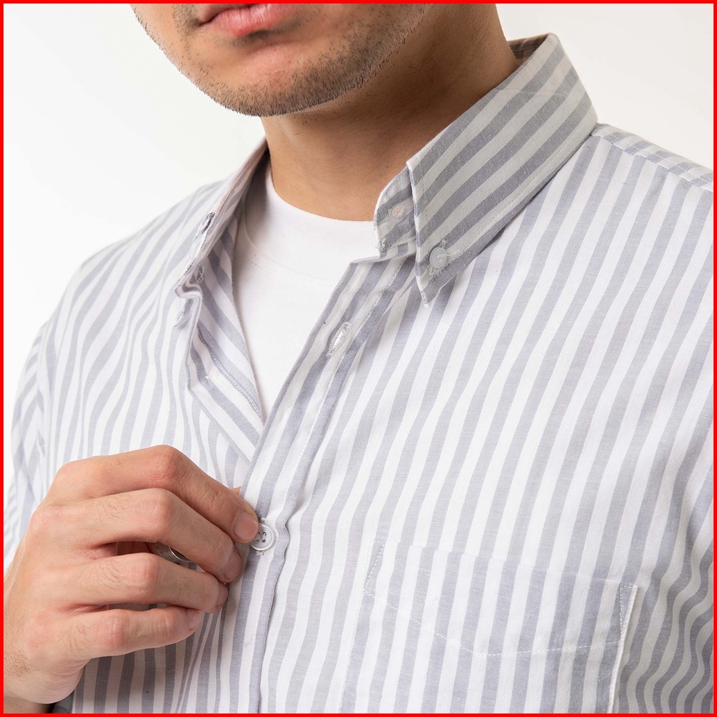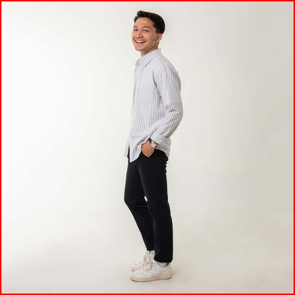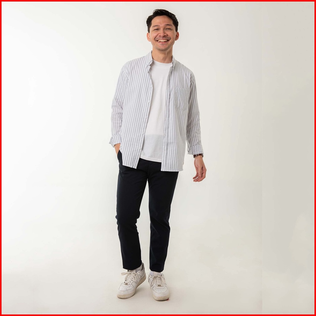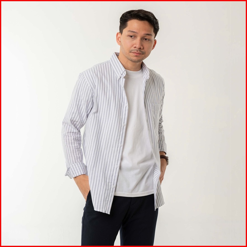 Kemeja Pria Garis Woodcutter Basic Butcher Stripe - Light Grey Lengan Panjang