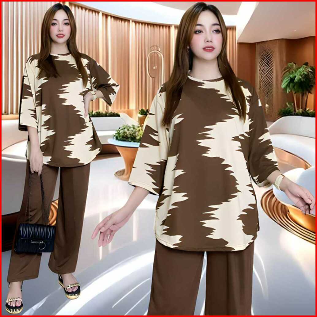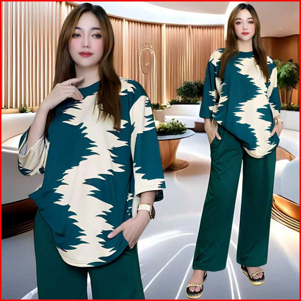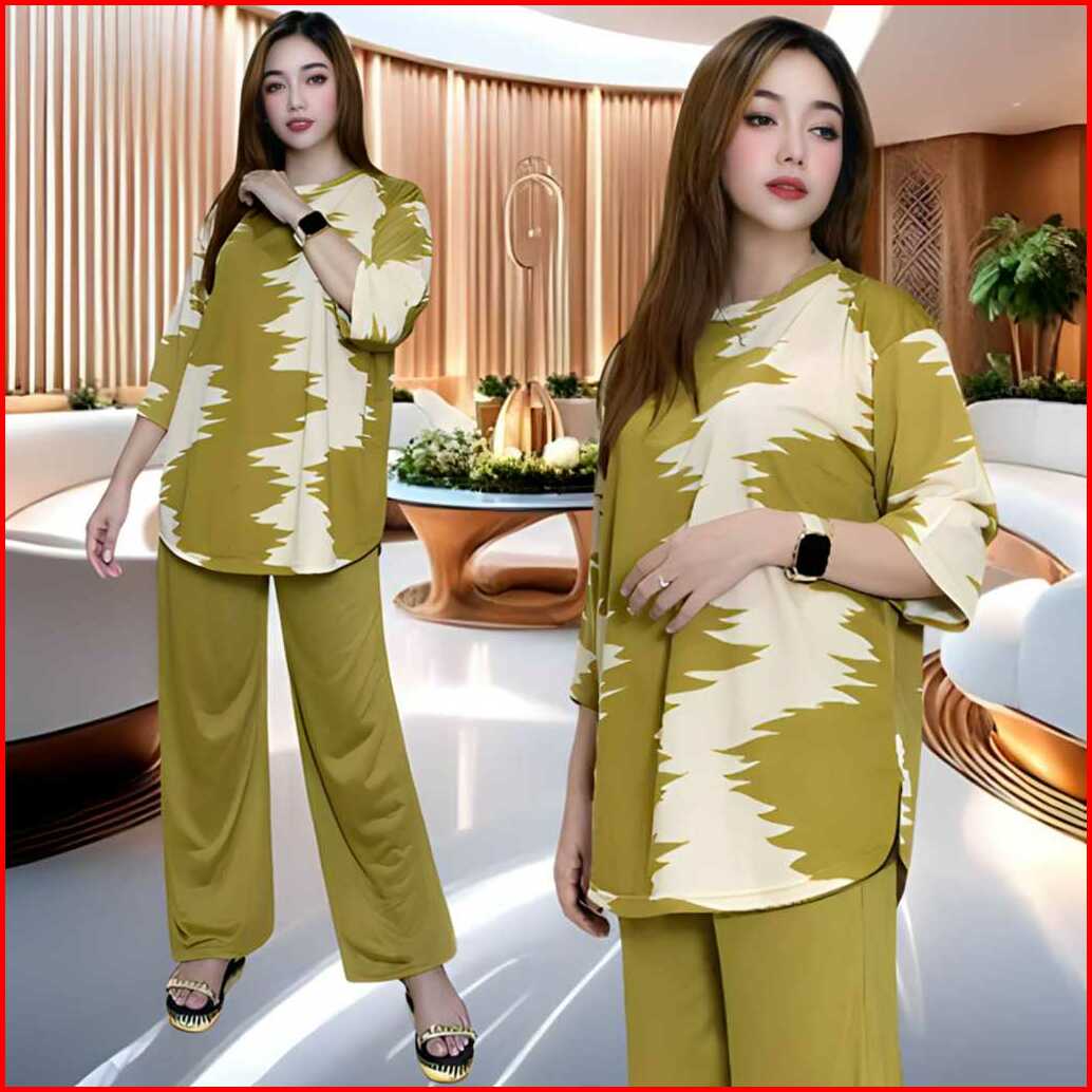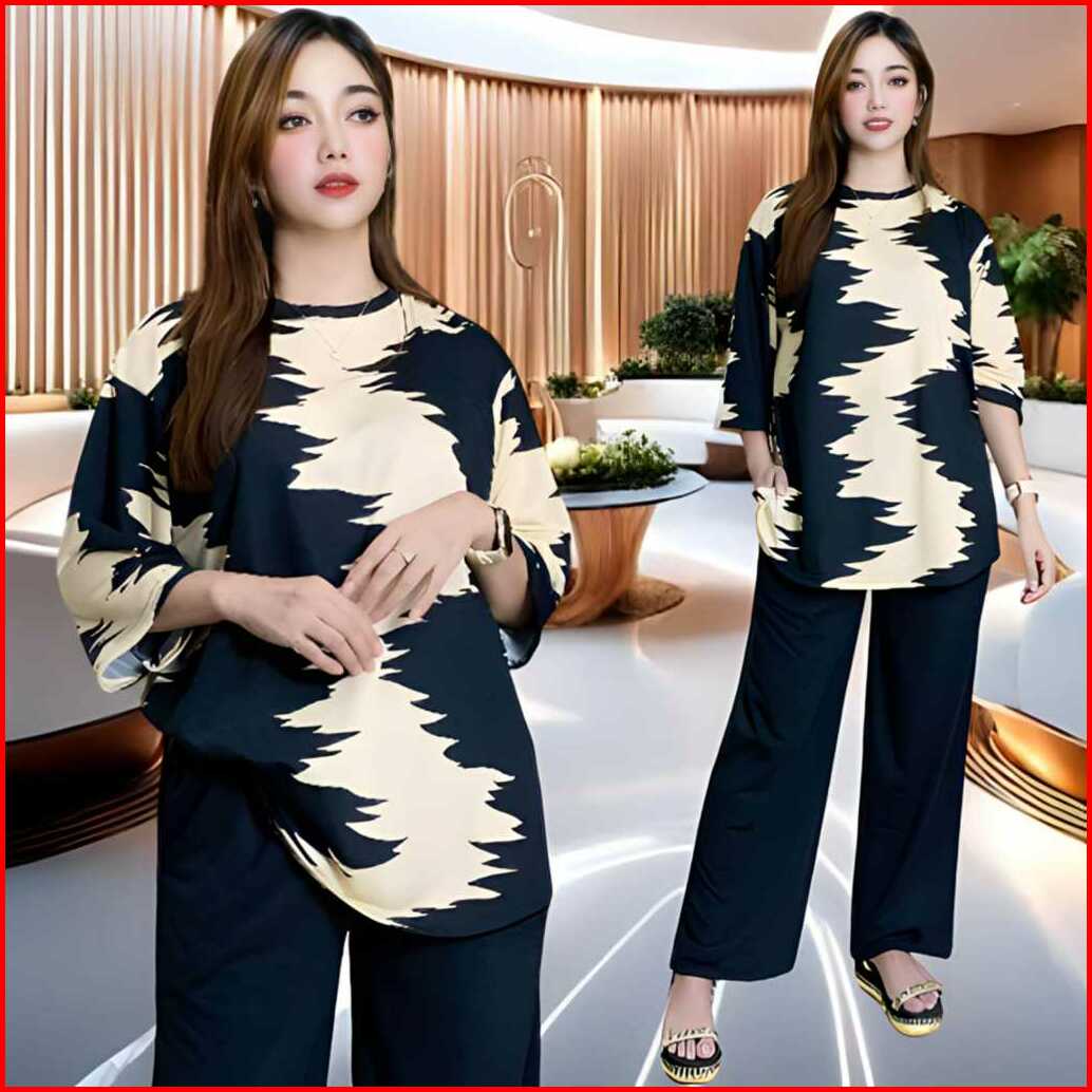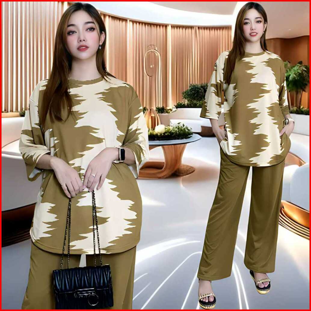 Dahayu Setelan Wanita Ld 120 Celana Lurus Dan Atasan Oval Belahan Kiri Dan Kanan Oversize Wanita Celana Lurus Karet Kant