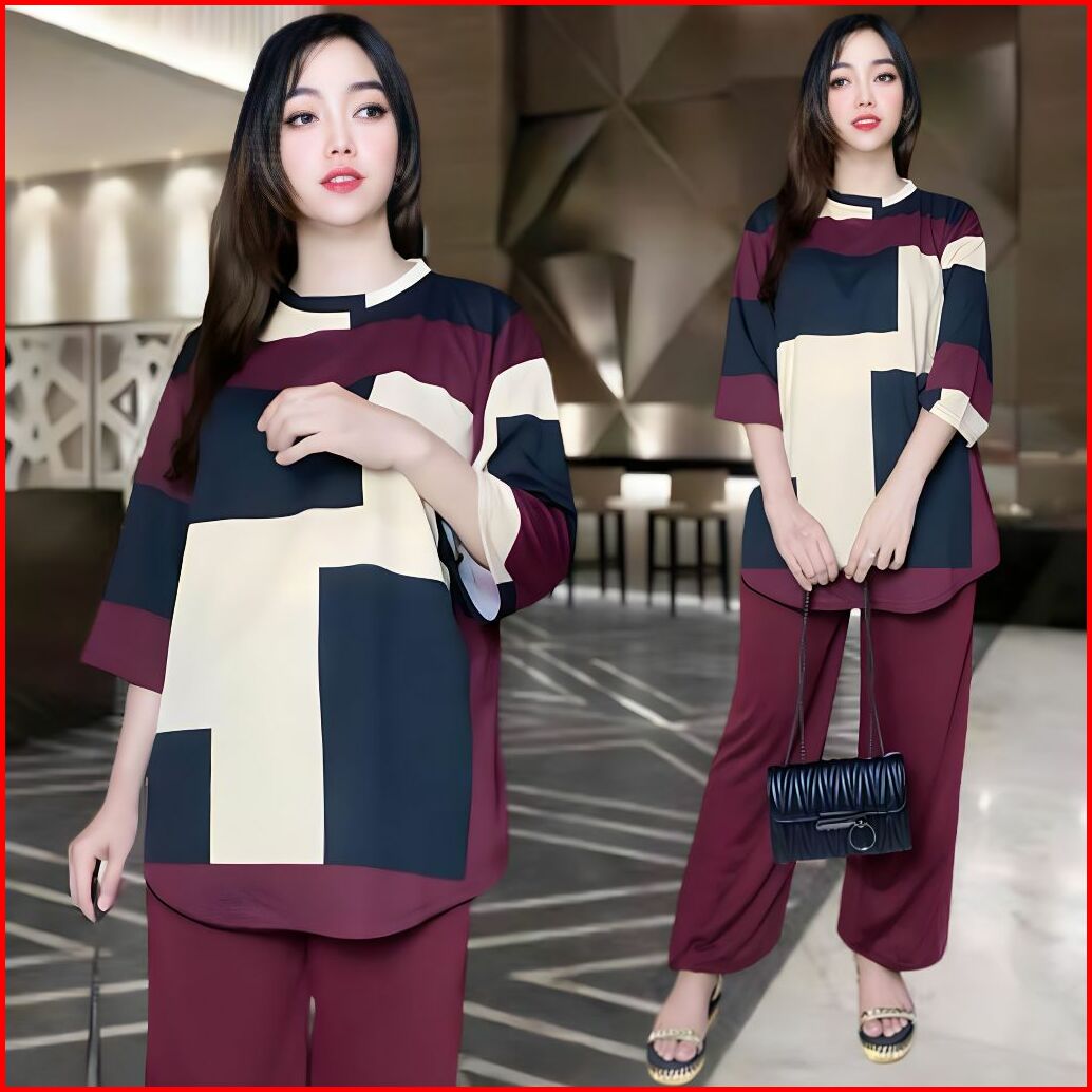 Myesha Ld 120 Ayda Ld 140 Setelan Wanita Celana Lurus Dan Atasan Oval Belahan Kiri Dan Kanan Oversize Wanita Celana Luru