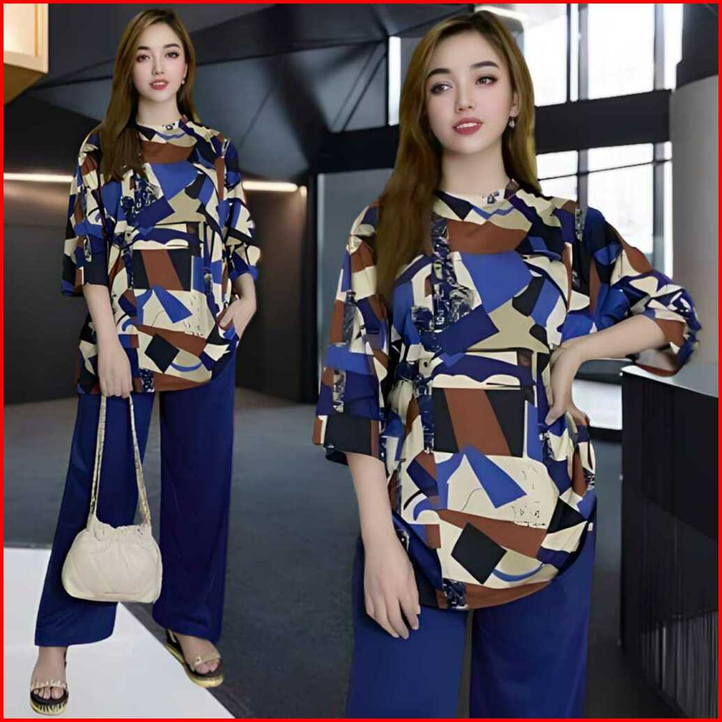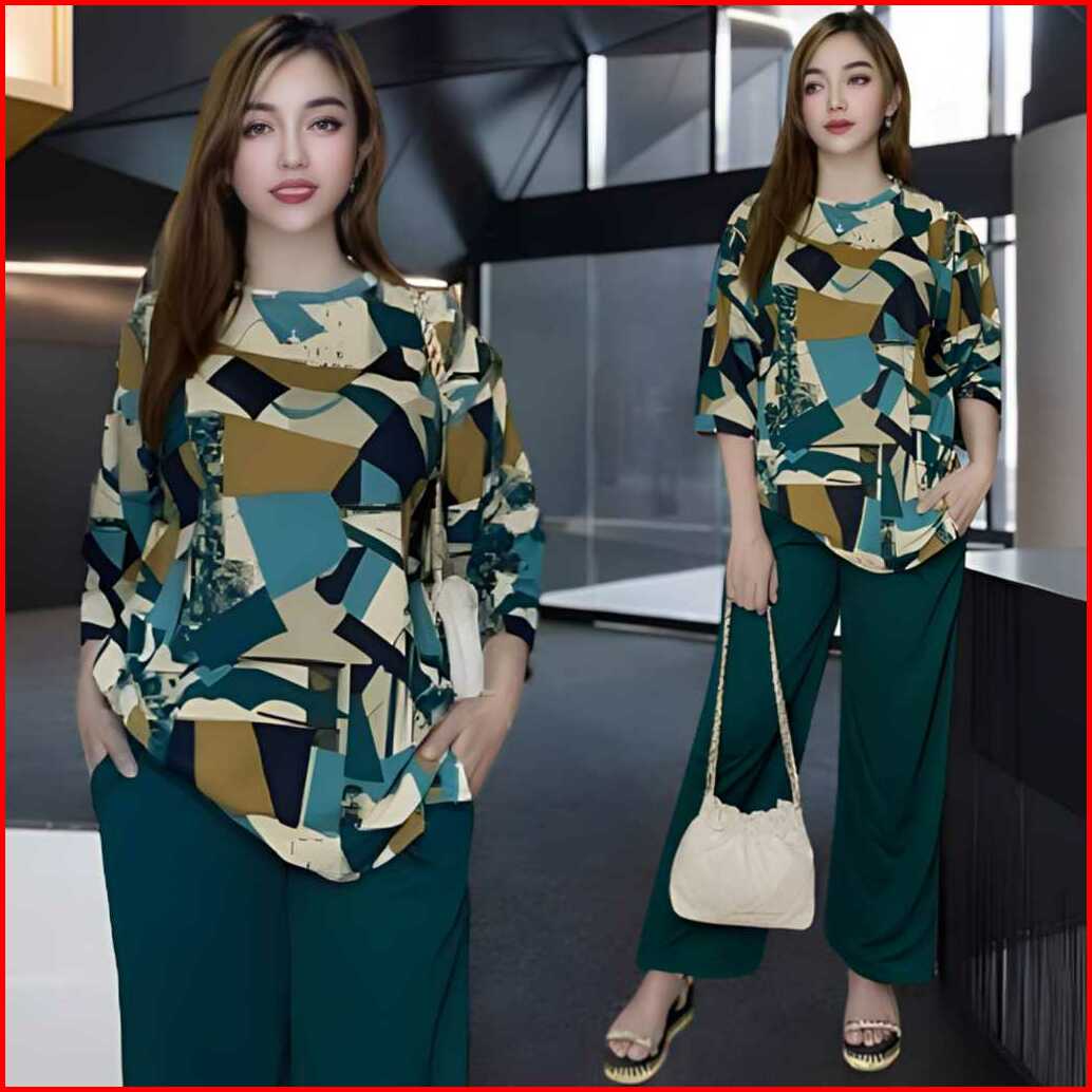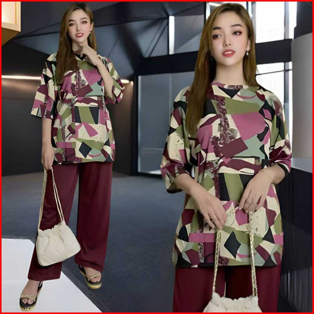 Zifara Setelan Wanita Ld 120 Celana Lurus Dan Atasan Oval Belahan Kiri Dan Kanan Oversize Wanita Celana Lurus Karet Kant