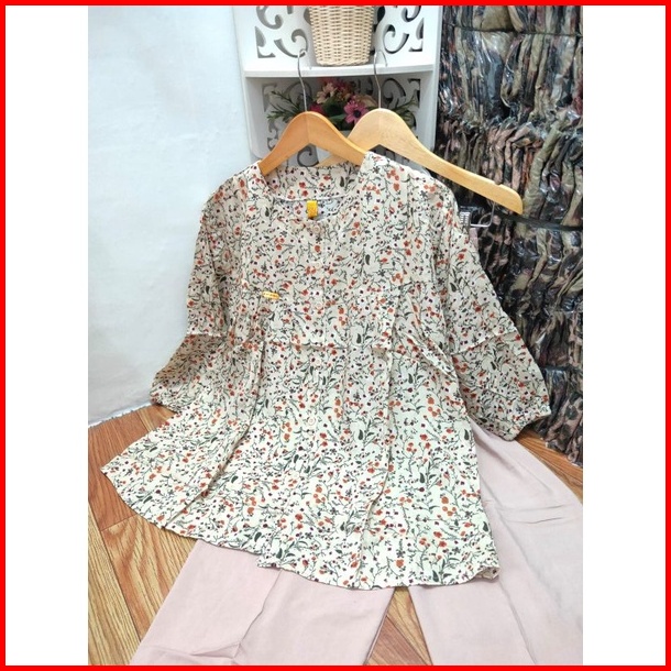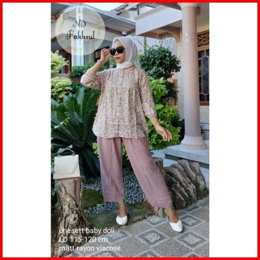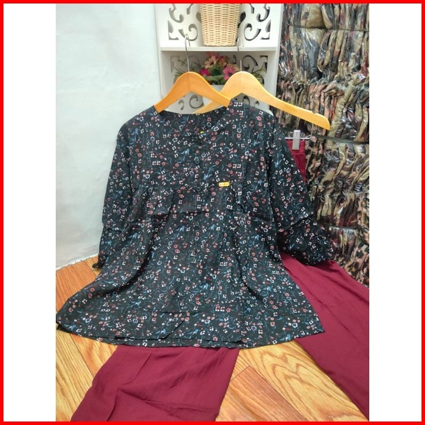 Setelan Wanita Motif Bunga Bahan Rayon Premium One Set Rayon Premium Jumbo
