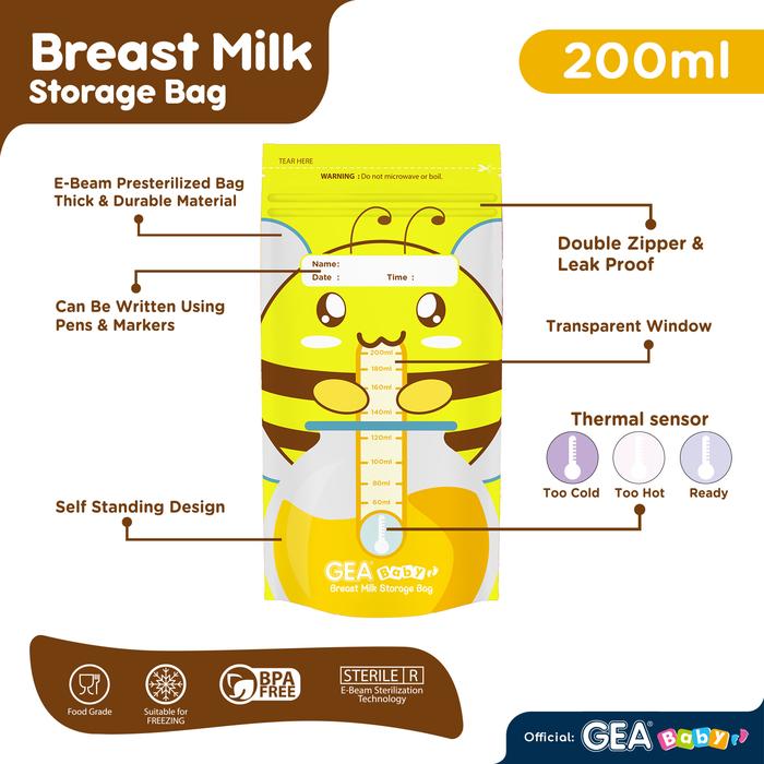 GEA BABY KANTONG ASI 200ML BREAST MILK STORAGE BAG PENYIMPANAN BEE