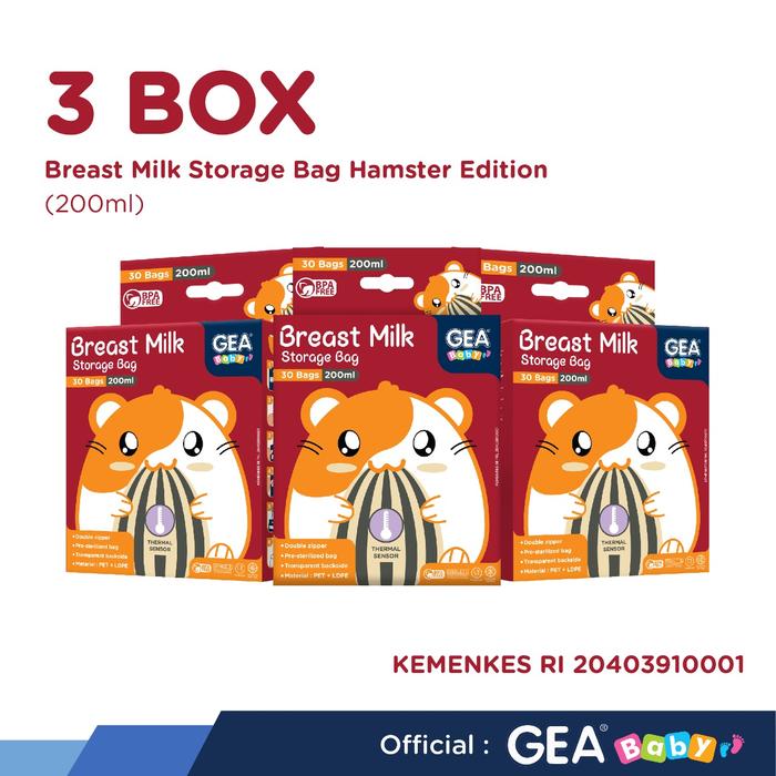PAKET 3 BOX GEA BABY 200ML BREAST MILK STORAGE BAG PENYIMPANAN 3 BOX BEE