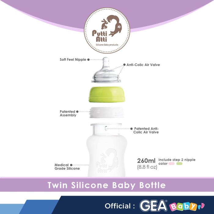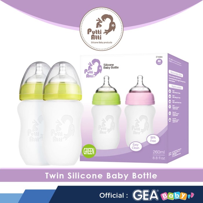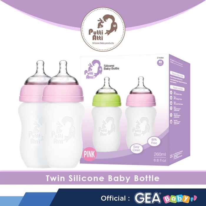 PUTTI ATTI SILICONE BABY BOTTLE 260ML TWIN BOTOL SUSU BAYI SILIKON PINK