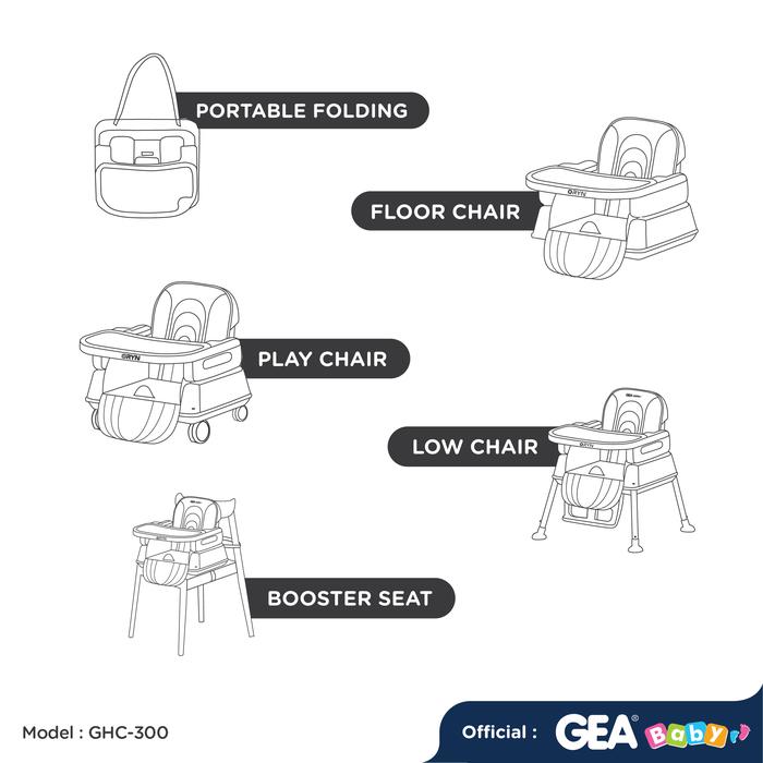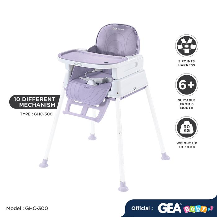 GEA BABY JOYFUL 10 PORTABLE HIGH CHAIR & BOOSTER (GHC300) 11 IN 1 MULTIFUNCTION HIGH CHAIR BABY FEEDING CHAIR MEJA MAKAN ANAK BALITA KURSI MAKAN BAYI AZALEA LILAC