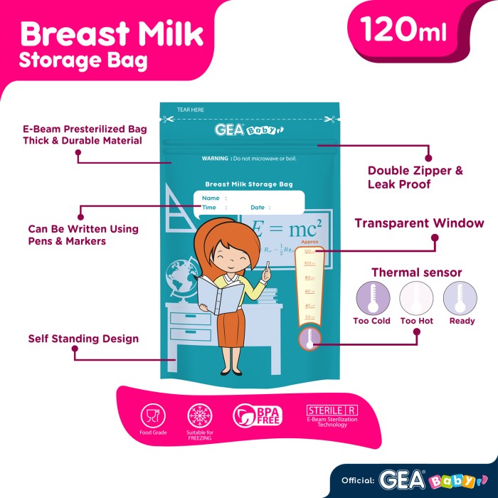 GEA BABY KANTONG ASI 120ML BREASTMILK STORAGE BAG TEACHER TOSCA