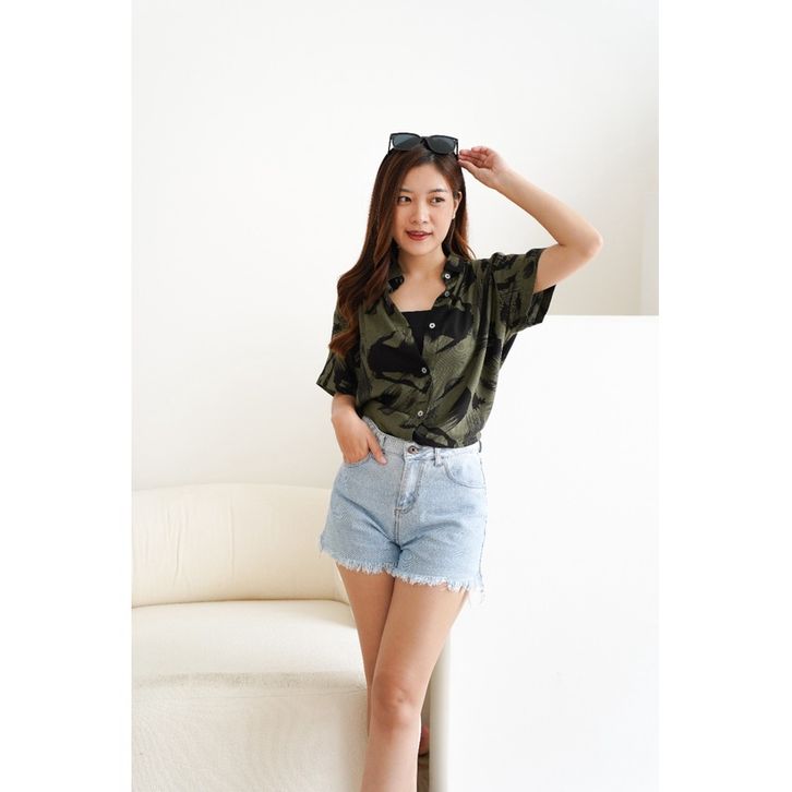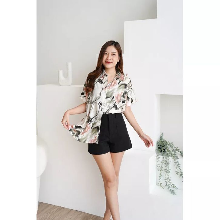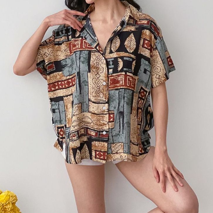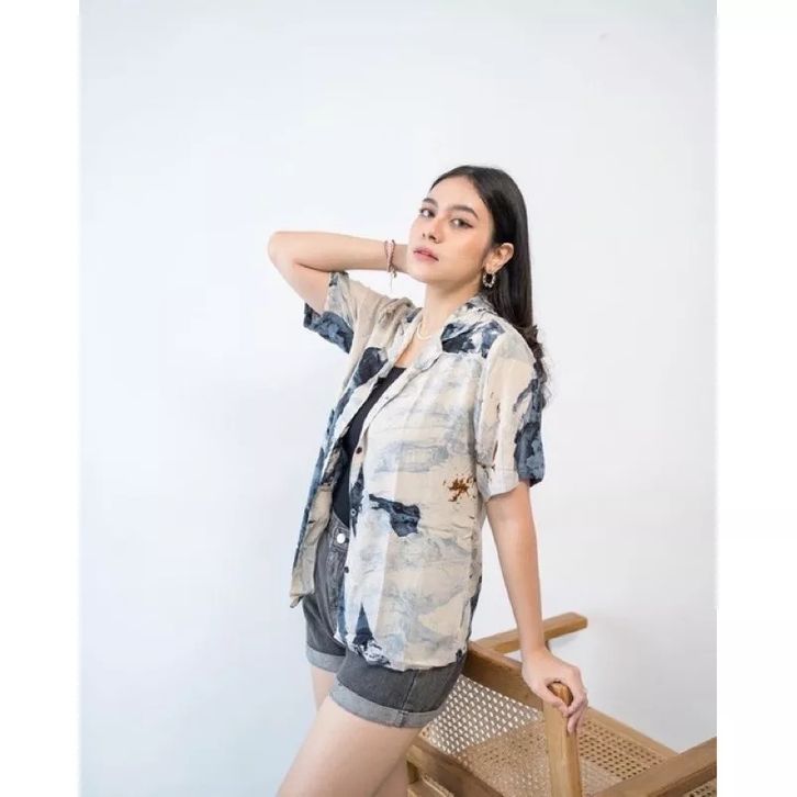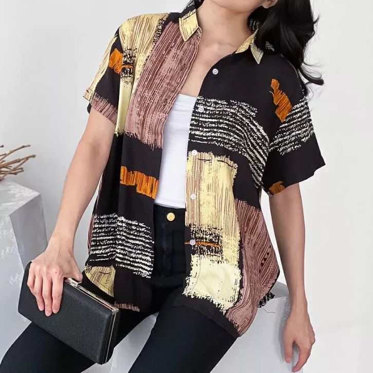 Kemeja Wanita Hawai | Kemeja Pantai Abstrak Casual Retro Bahan Rayon Vicouse Premium