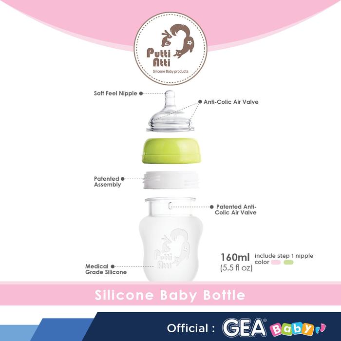 PUTTI ATTI SILICONE BABY BOTTLE 160ML BOTOL SUSU BAYI SILIKON SINGLE PINK