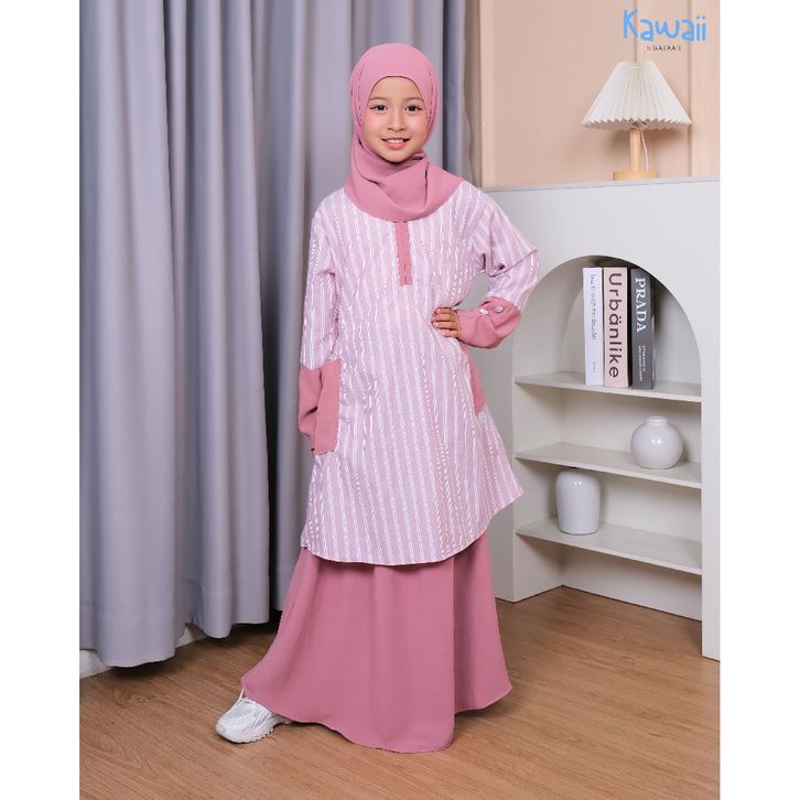 Gamis anak perempuan bonus kerudung - Little Zahra by Kawaii - Katun Bolong mix Airflow mix Haruka