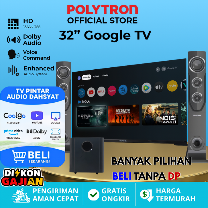 [Mall] POLYTRON TV SMART 32 INCH HD CINEMAX SET SPEAKER TELEVISI 43 INCH DIGITAL LED WIFI ANDROID COOCAA SHARP