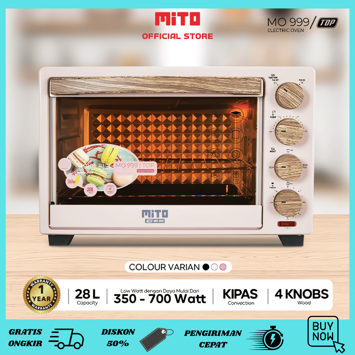 [Mall] Mito MO999 TOP WOOD SERIES 28L - 700W Oven Listrik Microwave Best Seller Low Watt Berkualitas Openan Kue Terbaru
