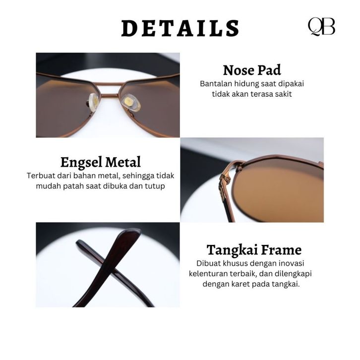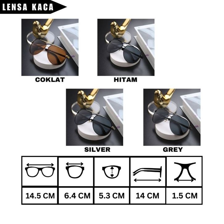Kacamata Hitam Matahari Polarized Fashion Cowok Cewek Unisex Kaca Mata Polar Anti Sinar UV 400 P Berbahan Logam Premium
