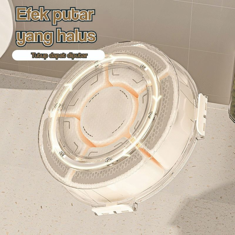Toples Bulat Makanan Kedap Udara dilengkapi Putar 360 Derajat Gagang Handle Nyaman