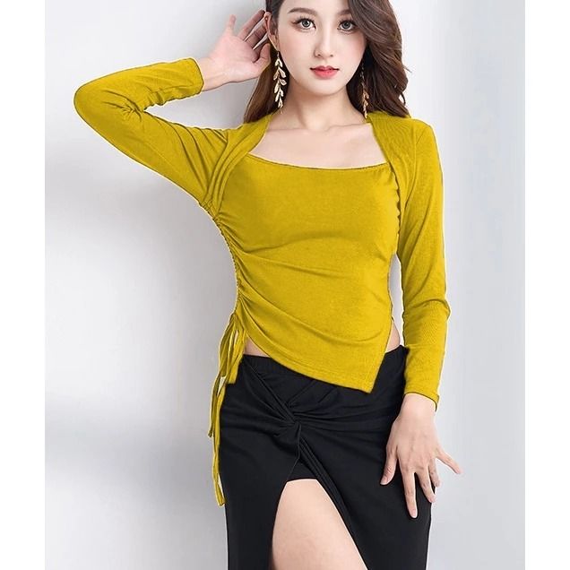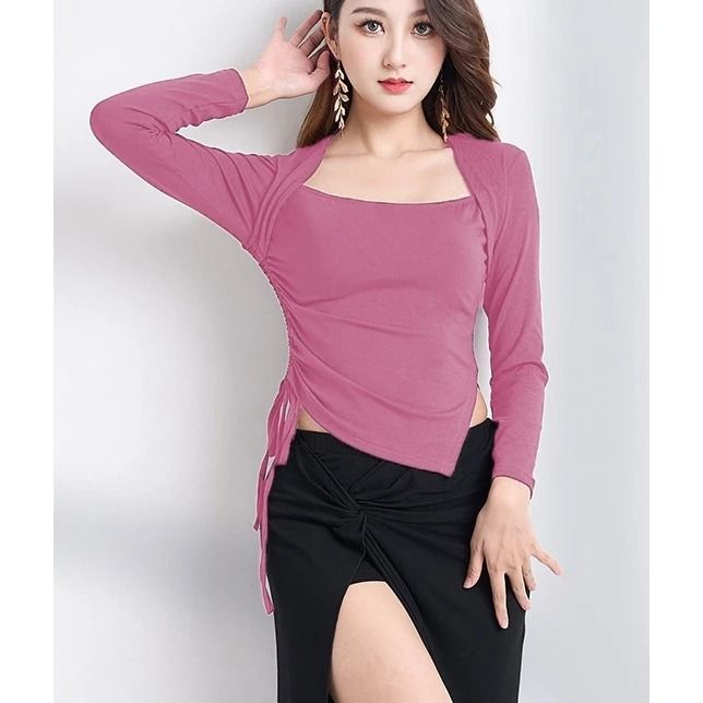 Atasan Lengan Panjang Wanita Model Serut Sampit Korean Style Seksi 6055