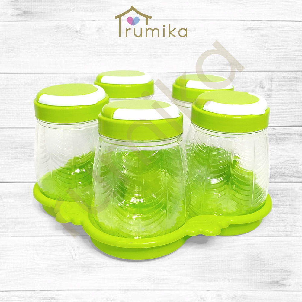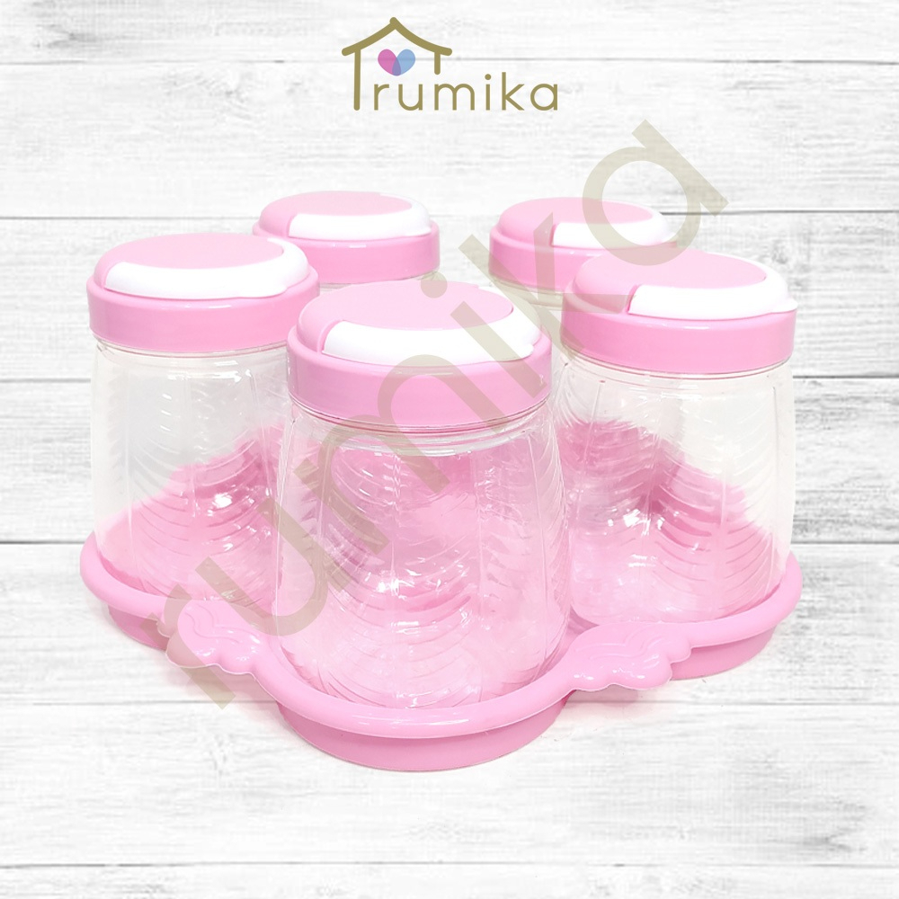 Toples Set Isi 5 Pcs Limala Dauna Ruby Plastik / Toples Kue Kering Nastar Snack Lebaran + Nampan