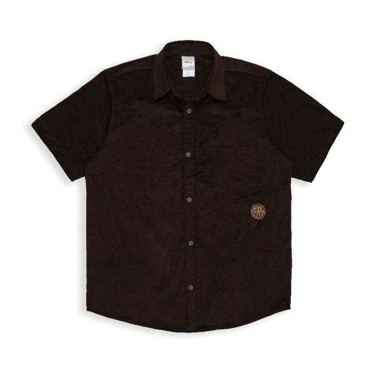 Kemeja Corduroy Easternwood Lengan Pendek Polos Coklat Brown Unisex
