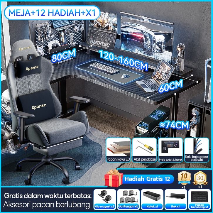 Meja Komputer Minimalis Xpanse 12 Hadiah /Meja Gaming L/Meja Belajar/Meja komputer /Meja Kantor[Uji Coba Gratis 30 Hari]