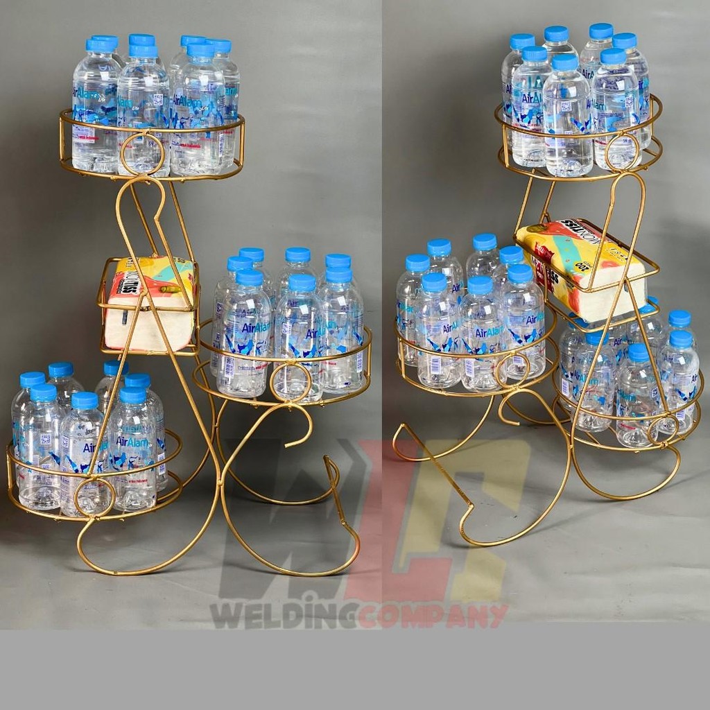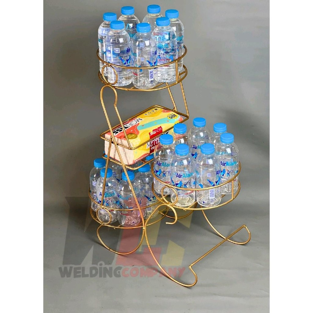 (FLASH SALE) Rak Aqua 3 Susun Warna Gold Anti Karat untuk Minuman Besi Gelas Tisu