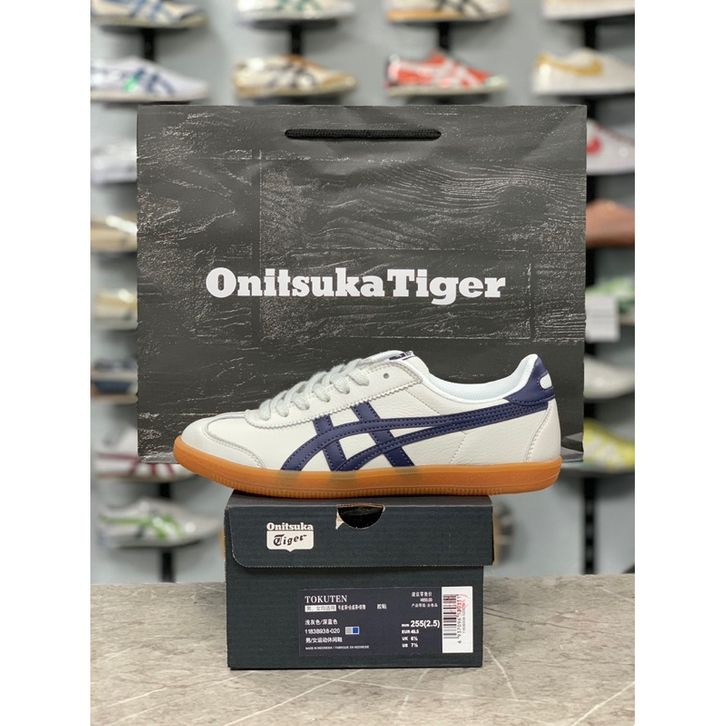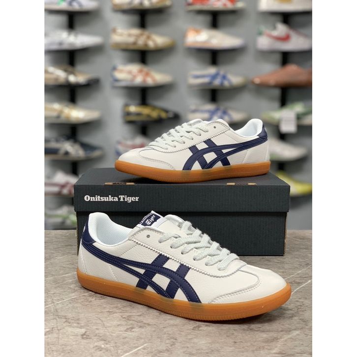 Sepatu ONITSUKA Tokuten Cream Navy LEATHER BNIB Sneakers Casual Unisex