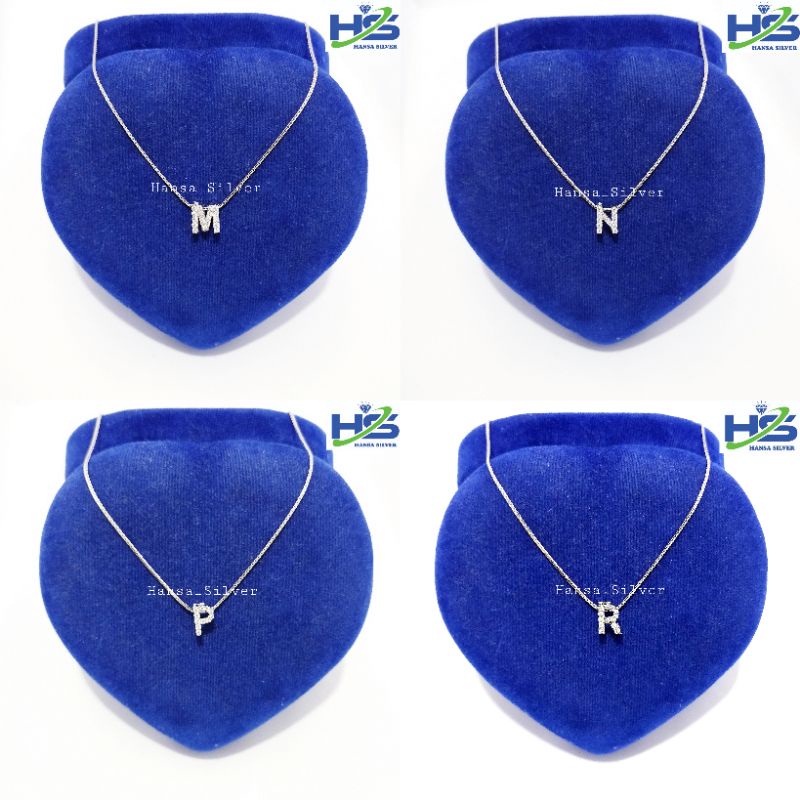 Kalungg Perakk Wanita Silverr Asli 925 Lapis Ems Putih Italy Liontiin Huruf Alfabet - Kalungg Anti Karatt