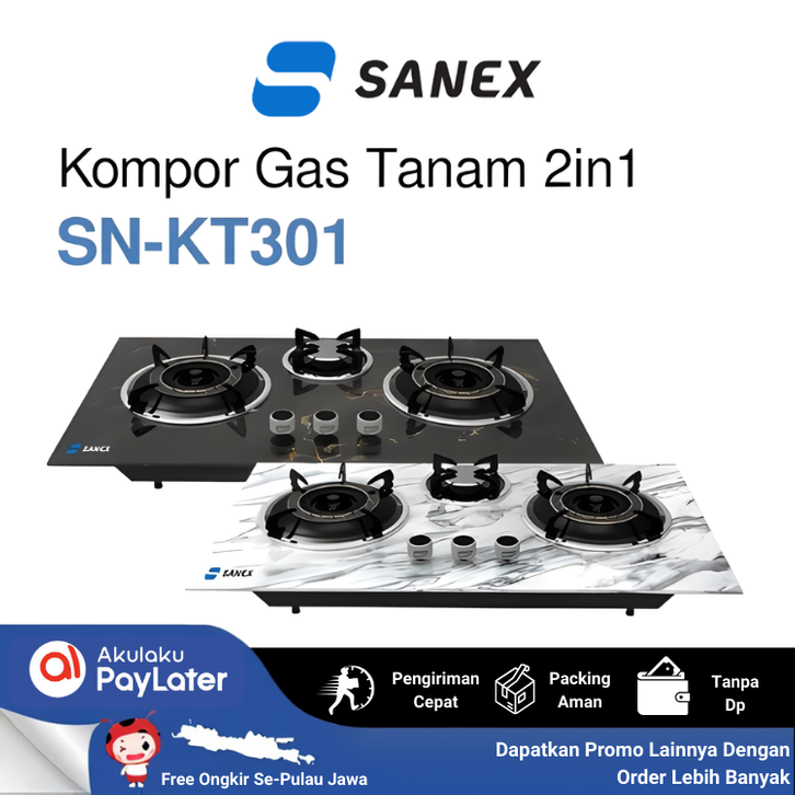 Sanex Kompor Gas Tanam 3 Tungku SN-KT301 Kaca Model Baru Stainless Modena Niko Rinnai Progas 2 Tungku