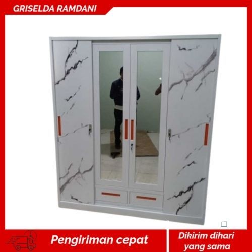 LEMARI KACA LEMARI KAYU LEMARI PAKAIAN SLEDING 4 PINTU LEMARI SLEDING BESI MINIMALS LEMARI BAJU SLEDING LACI CTR1