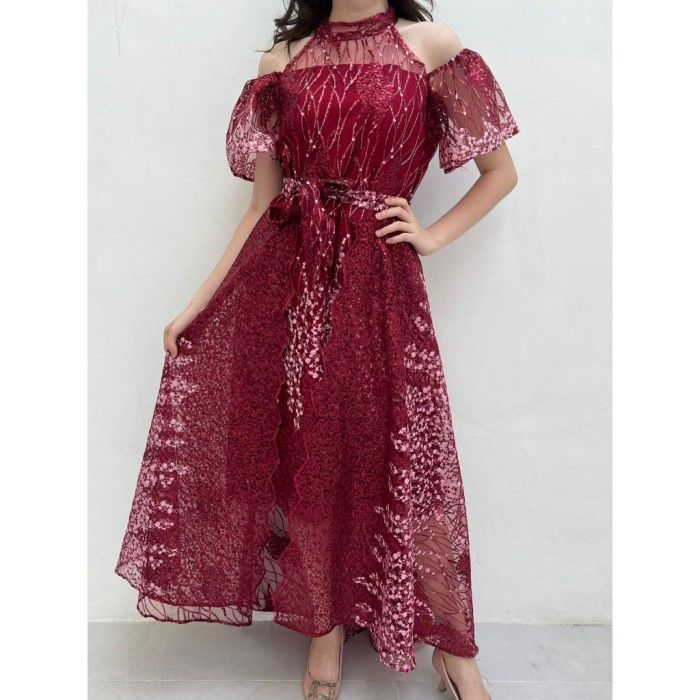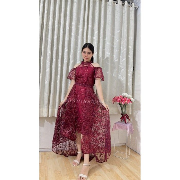 Long Dress Ken-268 Long Dress Wanita Mewah Pesta Kondangan Bridesmaid Korean Look - Babybue