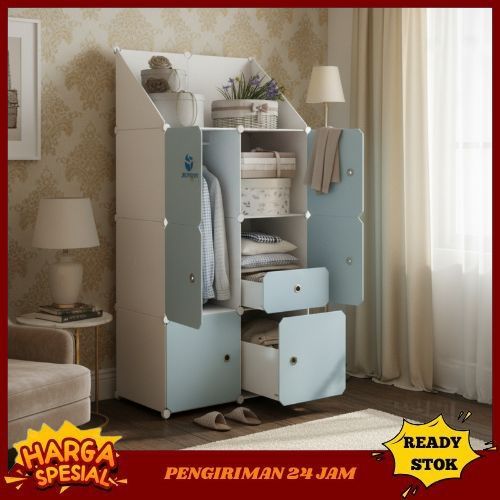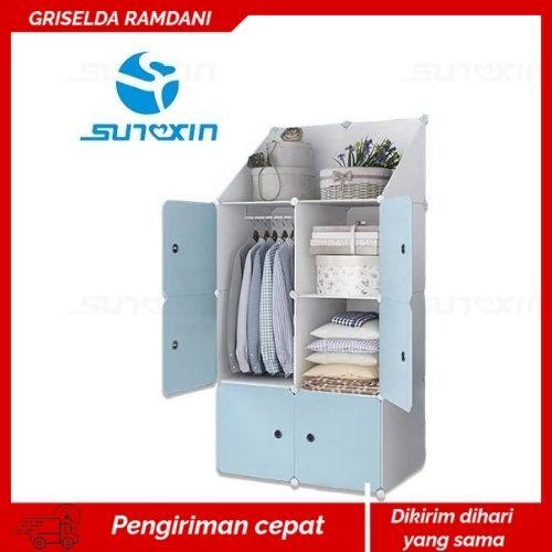 LEMARI KACA LEMARI KAYU RAK BAJU LEMARI PAKAIAN LEMARI KOTAK PLASTIK PORTABLE BONGKAR PASANG 6 PINTU LEMARI PLASTIK