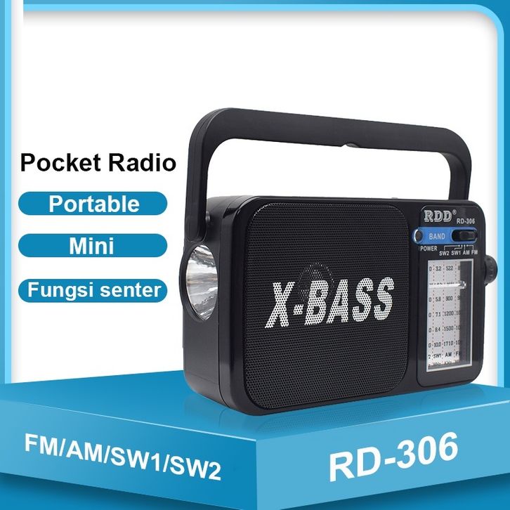 Speaker Ori Radio RD-306 Speaker FM/AM/SW1/SW2 Portable 4 Band Pocket Radio mini dengan senter