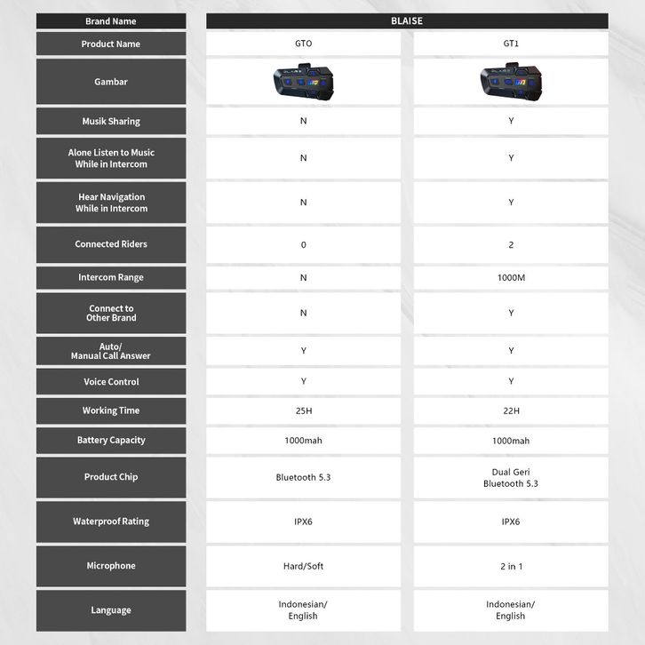 Intercom Helm Original BLAISE GT1 Intercom Helm Waterproof Musik Sharing Interkom Mic Helm Intercom 2 orang Bluetooth H