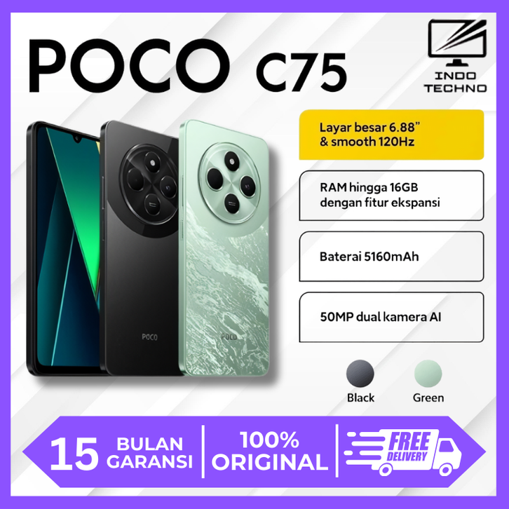 POCO C75 (6/128GB) (8/256GB) | Layar 6,88" | 50MP AI | Refresh rate 120 Hz | Baterai 5.160mAh | 18W Pengisian cepat