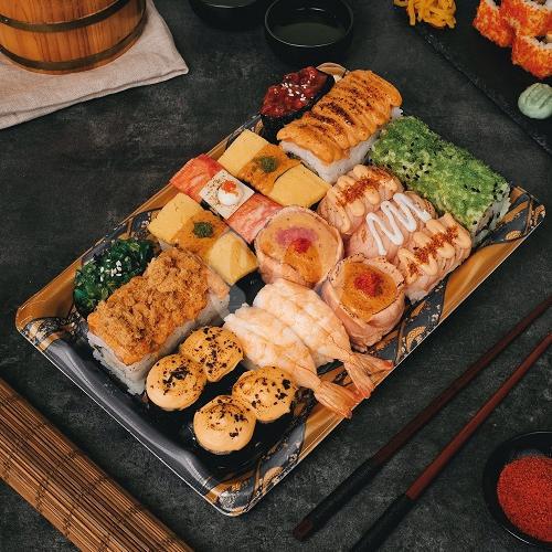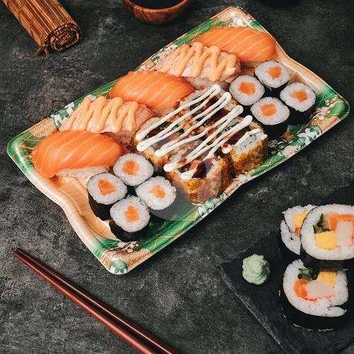Osaka Platter, Kyoto Platter, Salmon Platter, All About Salmon Set, Fresh Salmon Nigiri Set, Tokyo Platter, Salmon Aburi Mentai Set, Sushi Hosomaki Set, Spicy Ebifurai Roll, Salmon Cheese Roll, Chicken Katsu Fried Roll, Mentai Spicy Set, Yuri Set, Bara Set, Fuji Platter, Inasa Platter, Fukuoka Platter, Hokkaido Platter, Takoyaki Original, Takoyaki Spicy, Takoyaki Cheese, Gyoza Original, Oden Original, Oden Spicy, Salmon Ball (Snack), Salmon Skin, Negima, Torimi Paprika, Torimi Original, Torimi Spicy, Ramen Tori Abura Soba Original, Ramen Tori Abura Soba Spicy, Ramen Tori Dango Soba Original, Ramen Tori Dango Soba Spicy, Ramen Tori Aburi Paitan, Ramen Tori Aburi Spicy, Ramen Tori Dango Paitan, Ramen Tori Dango Spicy, Chicken Katsu, Karaage Spicy, Calamary Katsu, Ebi Furai, Dori Katsu, Sesame Chicken Katsu, Karage Ori, Shrimp Tempura, Kani Stick, Bento Chicken Yakiniku, Bento Chiken Teriyaki, Bento Chicken Katsu Tartar, Bento Dori Katsu Tartar, Donburi Chicken Yakiniku, Donburi Chicken Katsu Tartar, Donburi Dori Katsu Tartar, Fish Roll, Salmon Ball (Surimi), Salmon Fish Cake, Fish Syumai, Chicken Syumai, Bakso Manis, Bakso Asin, Bakso Ikan Pedas, Dumpling Cheese