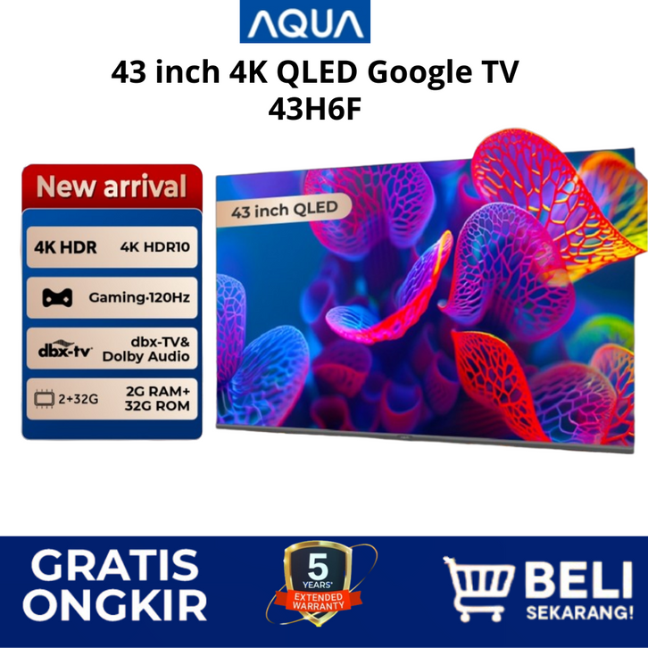 tv smart 32 inch aqua 43 inch smart tv 43H6F - 4K QLED - Google TV - ALLM - Google Play/Netflix/Youtube/Disney+Hotstar-R