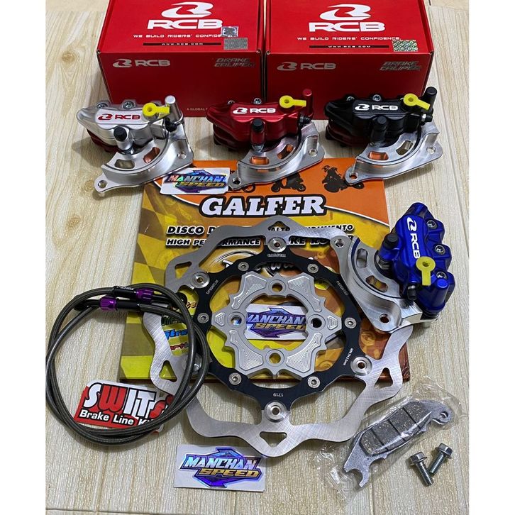 PAKET FULLSET KALIPER RCB S SERIES + BREKET + DISK GALFER 260mm + SELANG REM SWITS MIO SMILE SOUL XEON FINO KARBU 2P 2