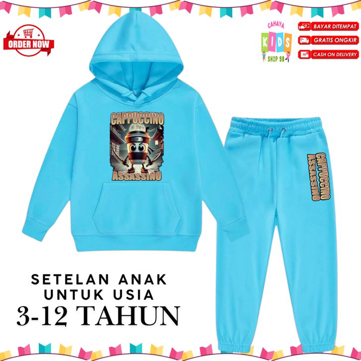 Setelan Baju Hoodie Anak Assassino Cappuccino Anomali Usia 3-12 tahun Setelan Baju Anak Tungtung sahur