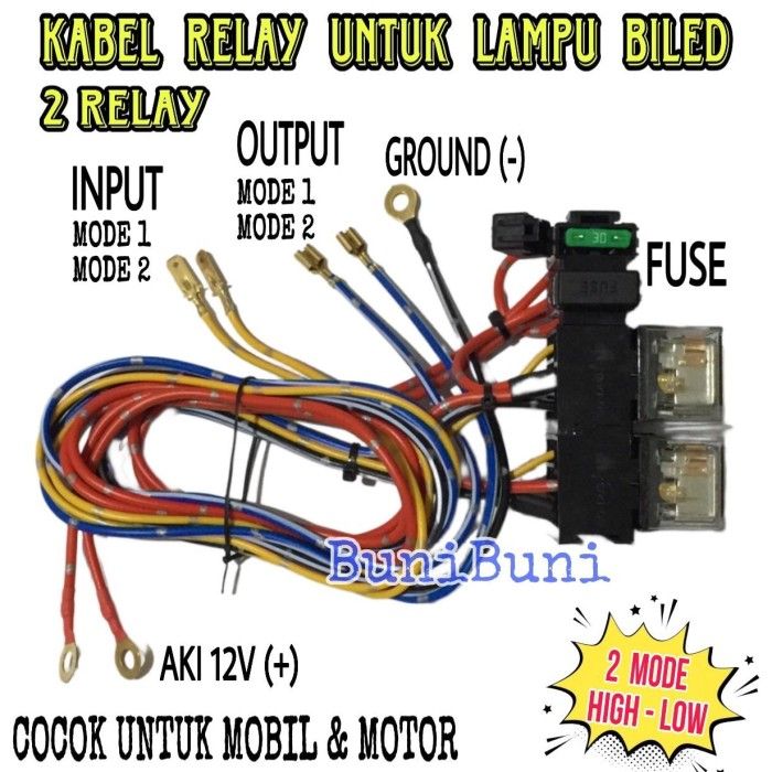 KABEL RELAY LAMPU TEMBAK BILED PROJIE TIPE 2 MODE HIGH LOW Untuk MOBIL / MOTOR