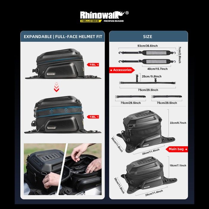 Rhinowalk MTR3001 Motorcycle Tank Bag Expandable - Tas Tangki Motor