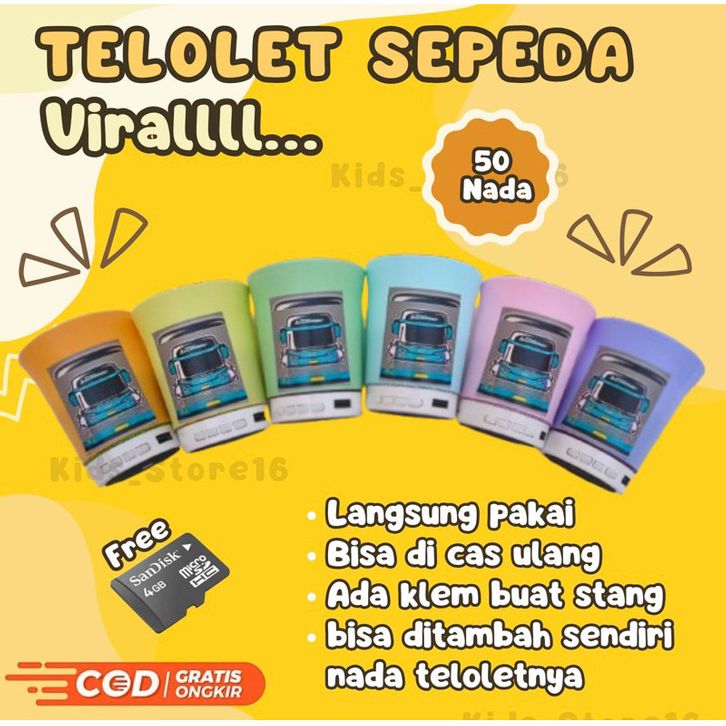 TERMURAH KLAKSON TELOLET / SEPEDA / BASURI SEPEDA / KLAKSON TELOLET 50 NADA //FREE MEMORI READY
