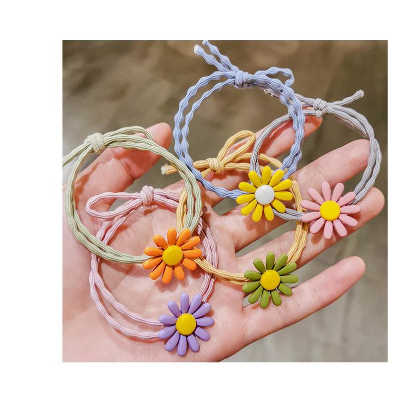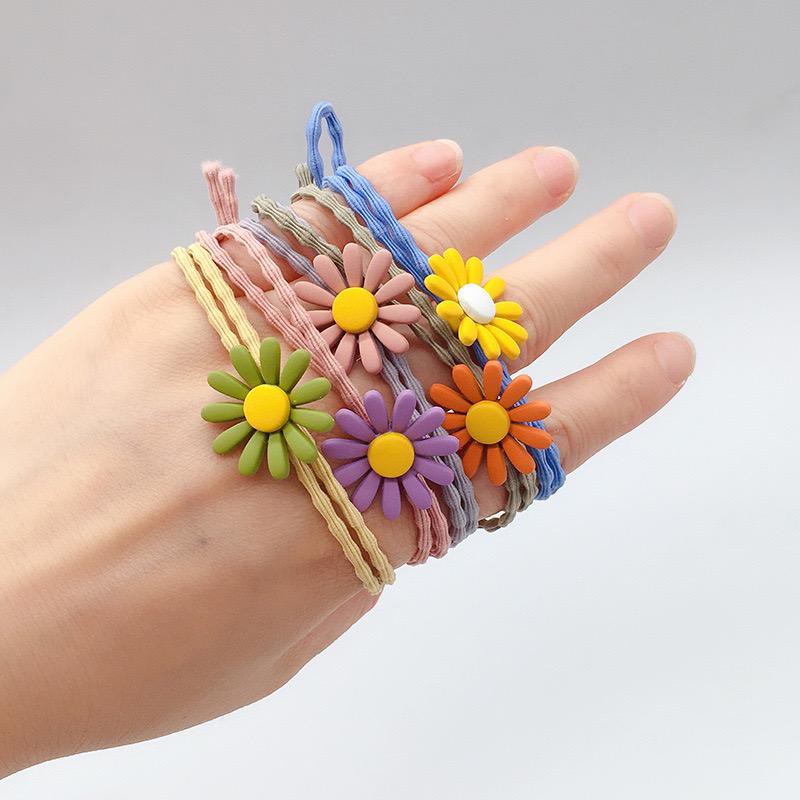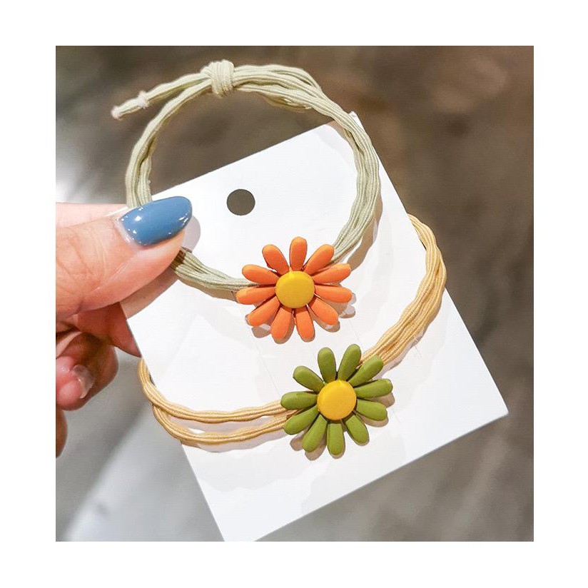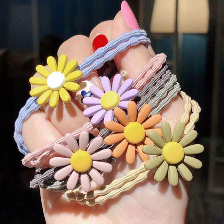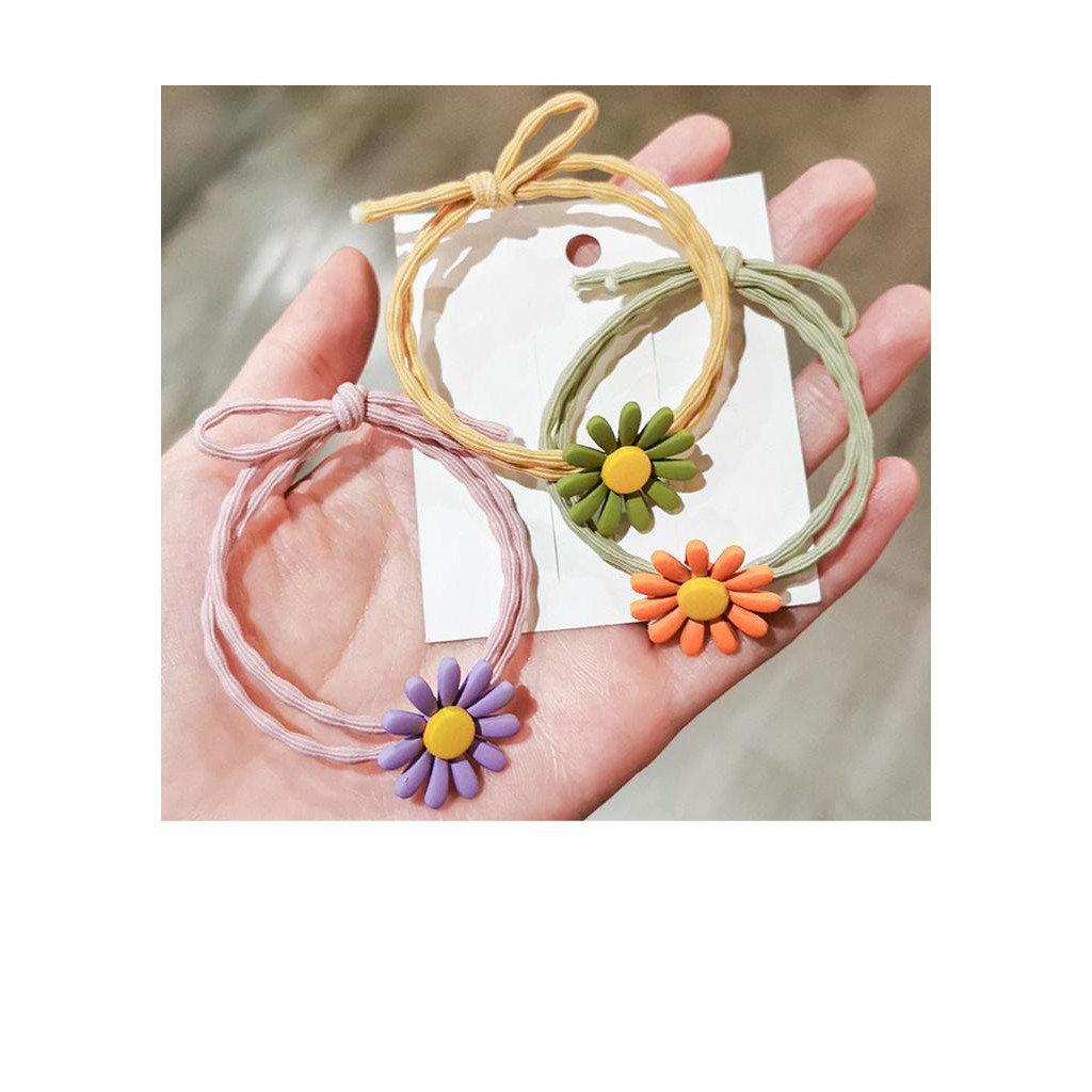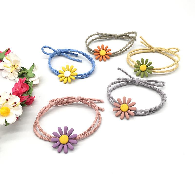 Ikat Rambut Korea Elastis Untuk Wanita Motif Bunga Daisy Bunga Karet Gelombang Model Korea