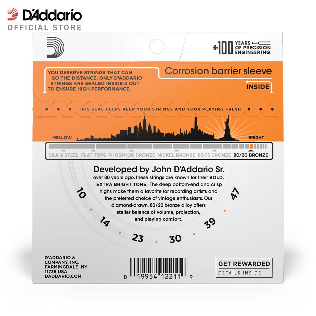 D'Addario EJ10 Bronze Acoustic Guitar Strings, Extra Light, 10-47