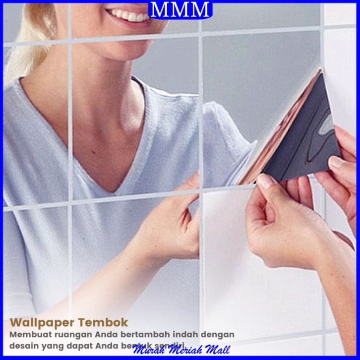 MMM Stiker Cermin Dinding Anti Pecah Tempel Persegi Rectangular 15X15cm Kotak Mirror Wall Decoration Sticker Square PVC